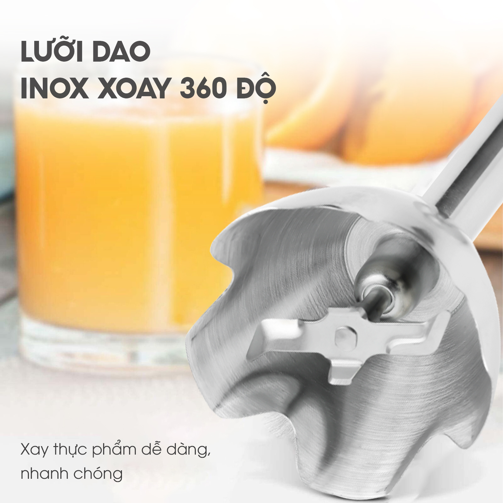 - Máy xay sinh tố cầm tay đa năng Lebenlang LBL3638 có đến 2 lưỡi dao dày dặn, sắc bén với khả năng xoay 360 độ, giúp xay thực một cách dễ dàng, nhanh chóng. Chất liệu của toàn bộ thân máy, lưỡi dao và đầu đánh đều được làm bằng inox 304 không gỉ, đảm bảo vệ sinh thực phẩm và an toàn cho sức khỏe của người sử dụng.