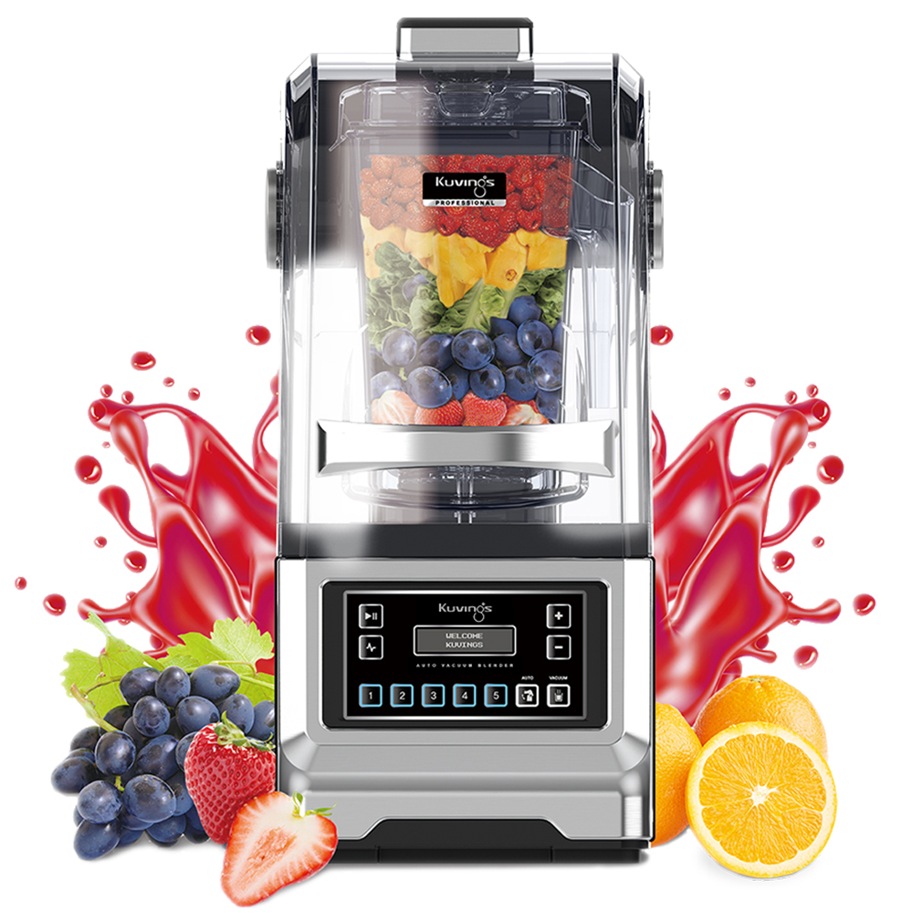 Máy xay sinh tố tự động hút và xả chân không dành cho kinh doanh hiệu Kuvings hoạt động liên tục 3 phút một lần xay và xay được 200+ ly mỗi ngày, gồm 1 cối xay với công suất cực mạnh 3.5 HP – 32,000RMP, 35 công thức tối ưu hóa cho menu quán cà phê, sinh tố được tích hợp sẵn cùng với 5 chế độ nhớ, dao xay cao cấp chuyên dụng cho kinh doanh không sinh nhiệt với công nghệ xay 3 chiều trong môi trường chân không cho nước sinh tố mịn hơn, màu sắc tươi hơn, chậm tách nước, ít bọt và giữ được nhiều Vitamin, Enzym trong rau củ quả. Bảng điểu khiển một chạm cảm ứng để điều chỉnh 5 chế độ xay tự động, chế độ xay nhanh, chế độ xay thủ công và nhồi, tự động đóng mở nắp, nắp chống ồn, chế độ tự động ngắt điện an toàn khi quá tải hay quá nóng và khóa an toàn khi gắn cối xay không đúng cách, có chế độ tiết kiệm điện tự động, thuận tiện sử dụng kinh doanh nhà hàng, quán bar, quán cafe, khách sạn, màu Inox.