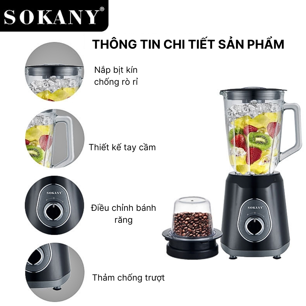 Máy xay sinh tố đa năng 2 IN 1 SOKANY SK-03045 công suất cao 1000W xay rau củ quả và các loại hạt, xay được đá viên