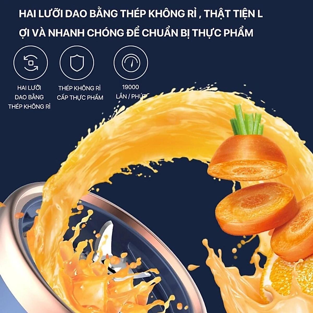 Máy Xay Sinh Tố Mini Cầm Tay Sử Dụng Pin Sạc Cổng USB, Máy Xay Mini 6 Lưỡi Siêu Tiện Lợi - Chính hãng