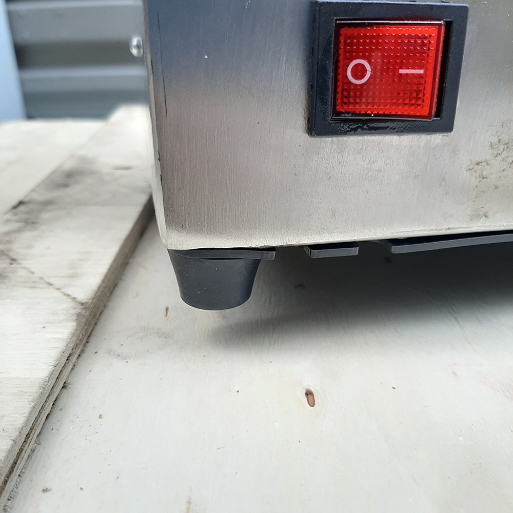 Máy được thiết kế nhỏ gọn, có 4 chân cao su cứng chắc, giúp máy không bị rung lắc khi hoạt động, hạn chế nước, dầu mỡ trong khu vực nhà bếp làm ảnh hưởng