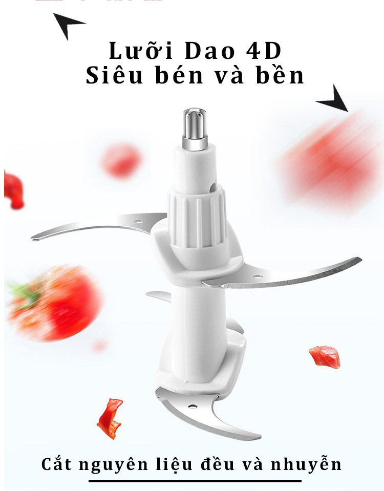 ️ ĐIỂM ĐẶC TRƯNG CỦA SẢN PHẨM - Thiết kế nhỏ gọn, dễ dàng cầm nắm khi sử dụng xay thực phẩm. - Dễ dàng xay nhuyễn thực phẩm với lưỡi dao sắc bén. -