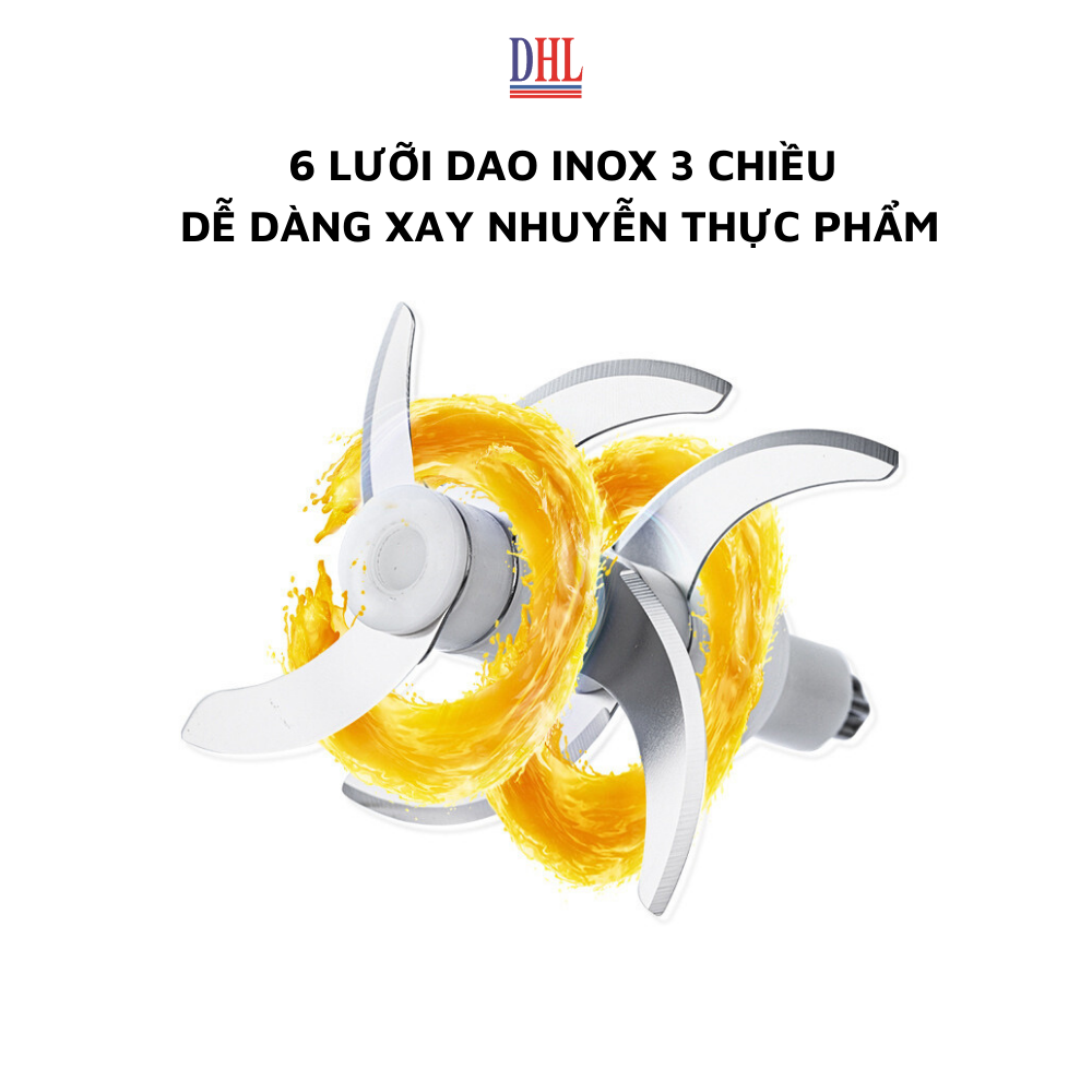 Xay nhuyễn các loại rau, củ và quả nhanh chóng. Máy xay sạc điện, tiện lợi, có thể sử dụng ở bất kỳ nơi đâu. Máy được trang bị 4 lưỡi dao làm bằng thép