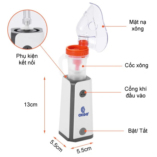 Máy xông mũi họng điện dung cầm tay CHIDO (tặng Adapter)