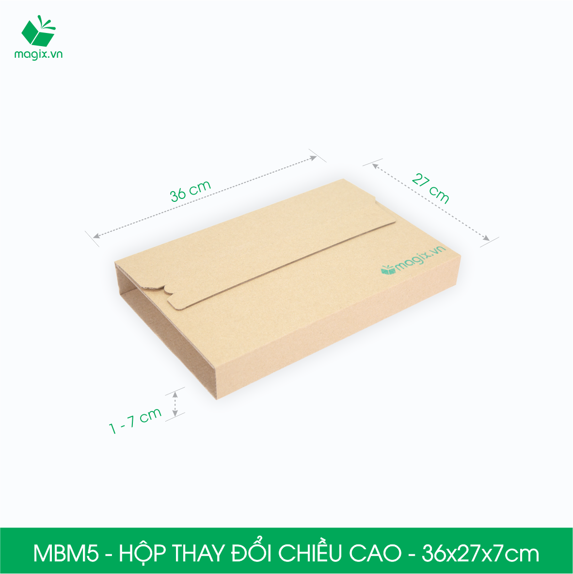 QUY CÁCH KỸ THUẬT Kích thước sản phẩm MBM1- 22x16x5 cm MBM2 - 25x17x6 cm MBM3 - 28x19x7 cm MBM4 - 32x22x8 cm MBM5 - 36x27x7 cm MBM6 - 41x32x7 cm Chất liệu: Carton sóng