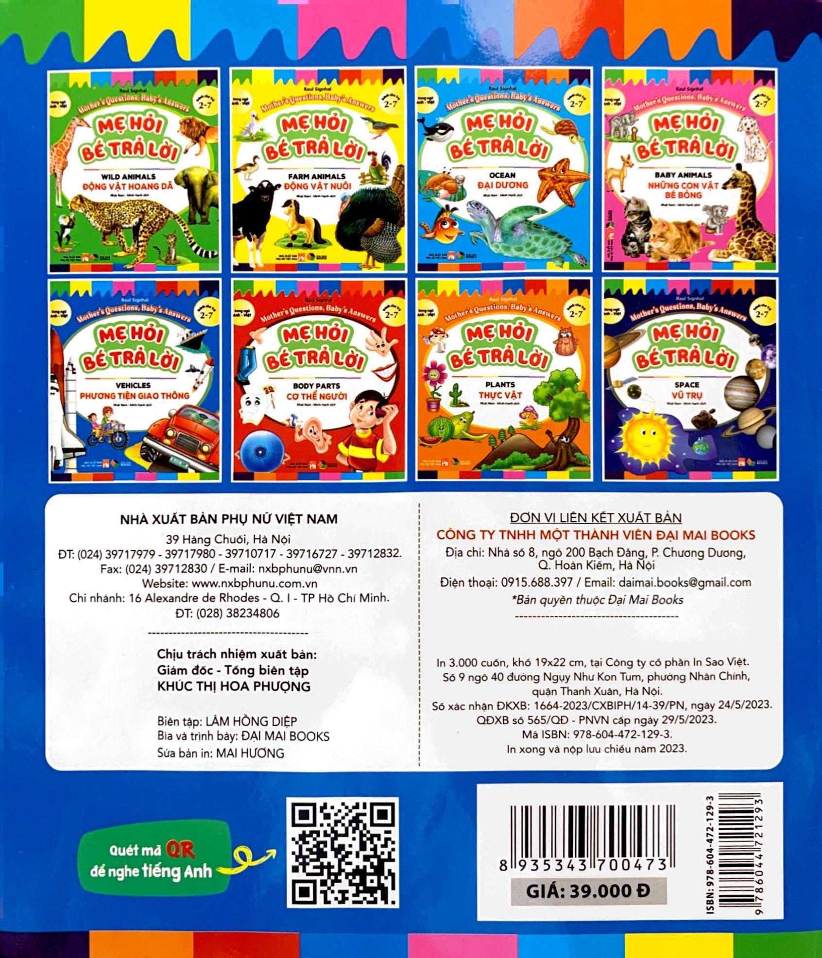 Sách được trình bày dưới dạng song ngữ Việt Anh, có mã QR code để nghe audio tiếng Anh.