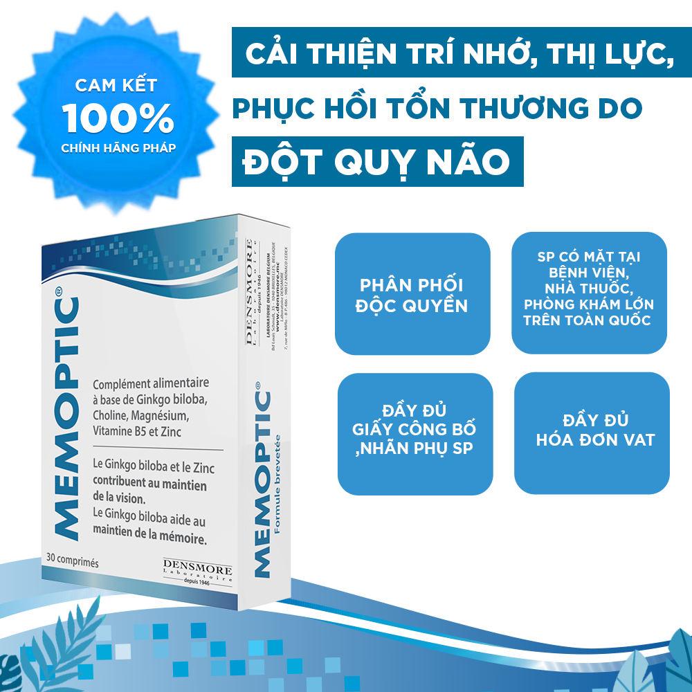Memoptic bổ sung Ginkgo biloba, choline, magiê, vitamin B5 giúp cải thiện tuần hoàn máu não, giúp tăng cường sự tổng hợp dẫn truyền thần kinh, bảo vệ thần kinh, giúp duy trì và cải thiện trí nhớ, tăng khả năng tập trung.