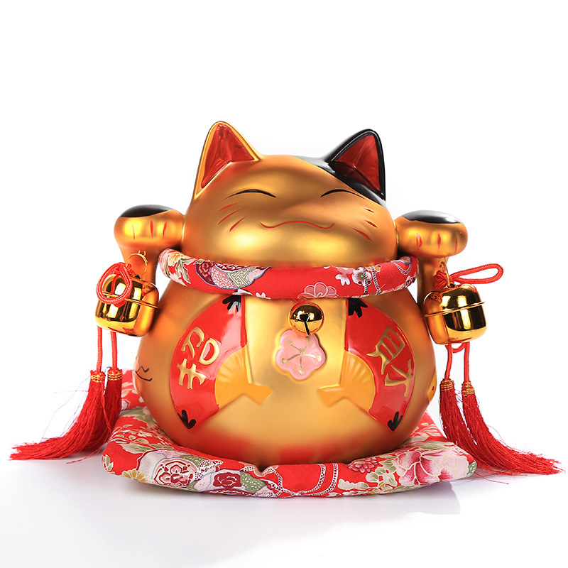 -Mèo thần tài lục lạc ,may mắn , thu hút tài lộc , có khe để tiền , kèm đệm lót xinh xắn ,thu hút khách hàng , mang vận khí tốt lành , công