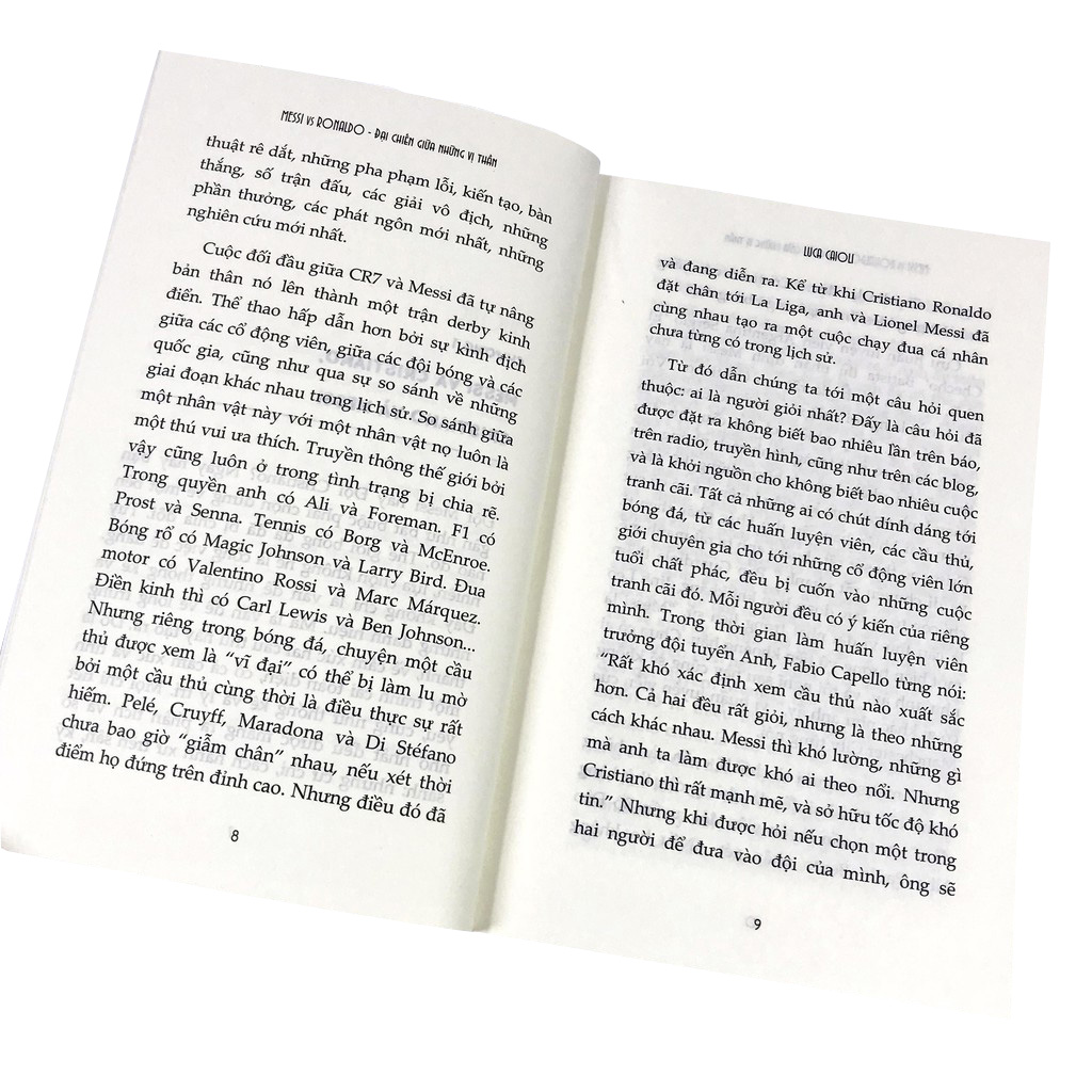 Messi vs Ronaldo - Ai là người xuất sắc hơn? Đấy không phải là câu hỏi mà cuốn sách này cố gắng trả lời. Nhưng thông qua cuốn sách này, các bạn sẽ có được tất cả những gì các bạn cần phải biết về hai siêu sao bóng đá đương đại, để từ đó có thể tự mình đưa ra quyết định