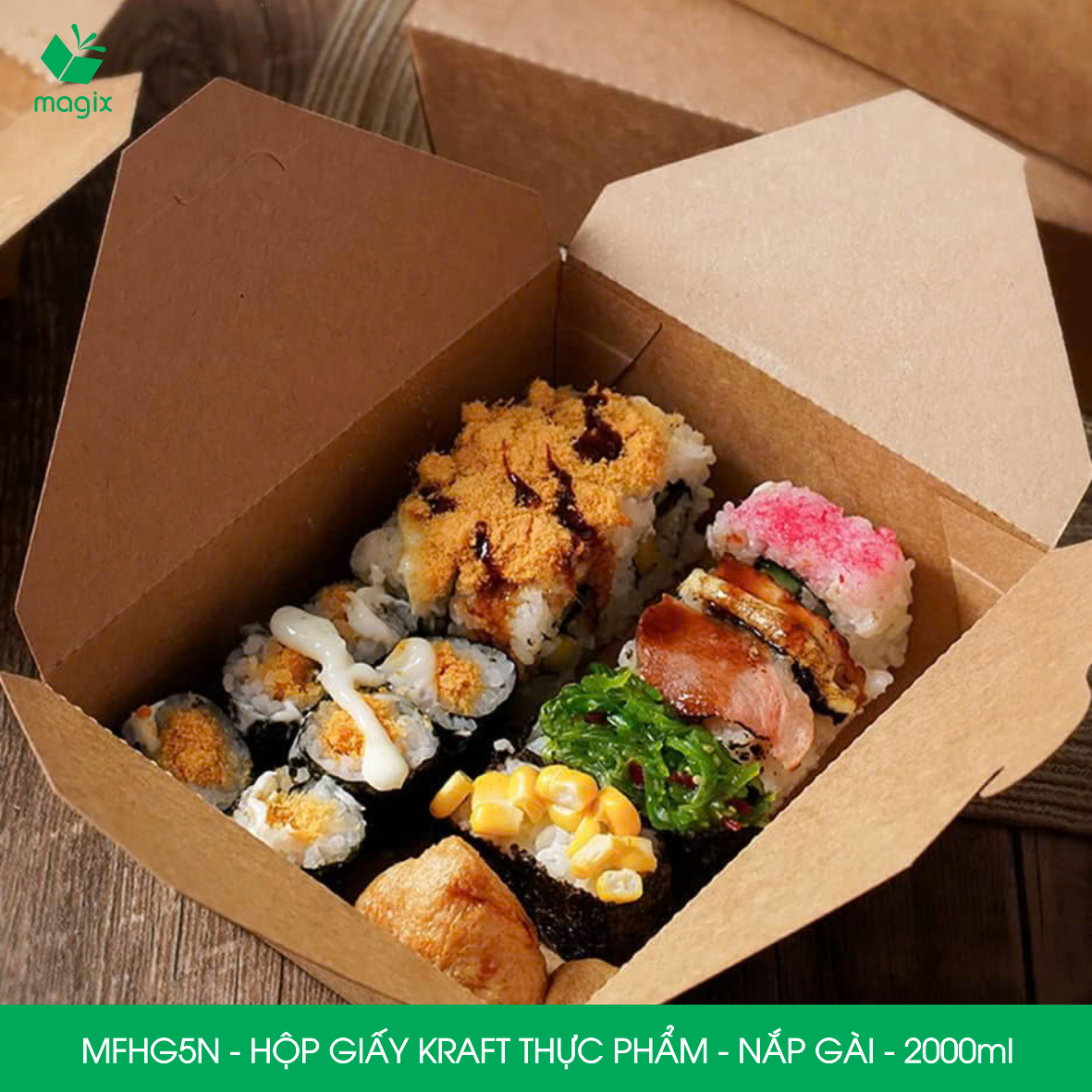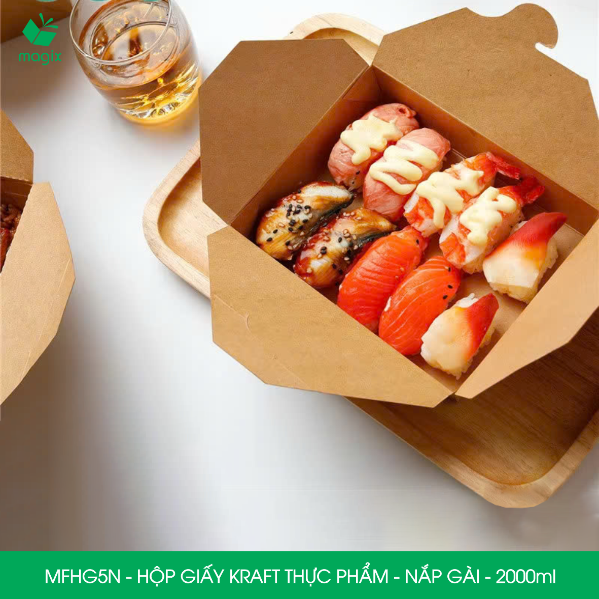 Từ lâu, bao bì thực phẩm là một trong những yếu tố có tính liên quan mật thiết đến sức khỏe của người tiêu dùng. Hiểu được điều đó MAGIX đã dày công nghiên cứu và phát triển để cho ra mắt dòng sản phẩm hộp giấy bao bì thực phẩm nắp gài với chất liệu giấy kraft nâu. Sản phẩm hộp bao bì thực phẩm nắp gài được sản xuất với công nghệ phủ water-based barrier coating materials, là chất phủ gốc nước chứng nhận đảm bảo ATVS thực phẩm và được FDA cấp chứng nhận an toàn đối với sức khỏe của người tiêu dùng.