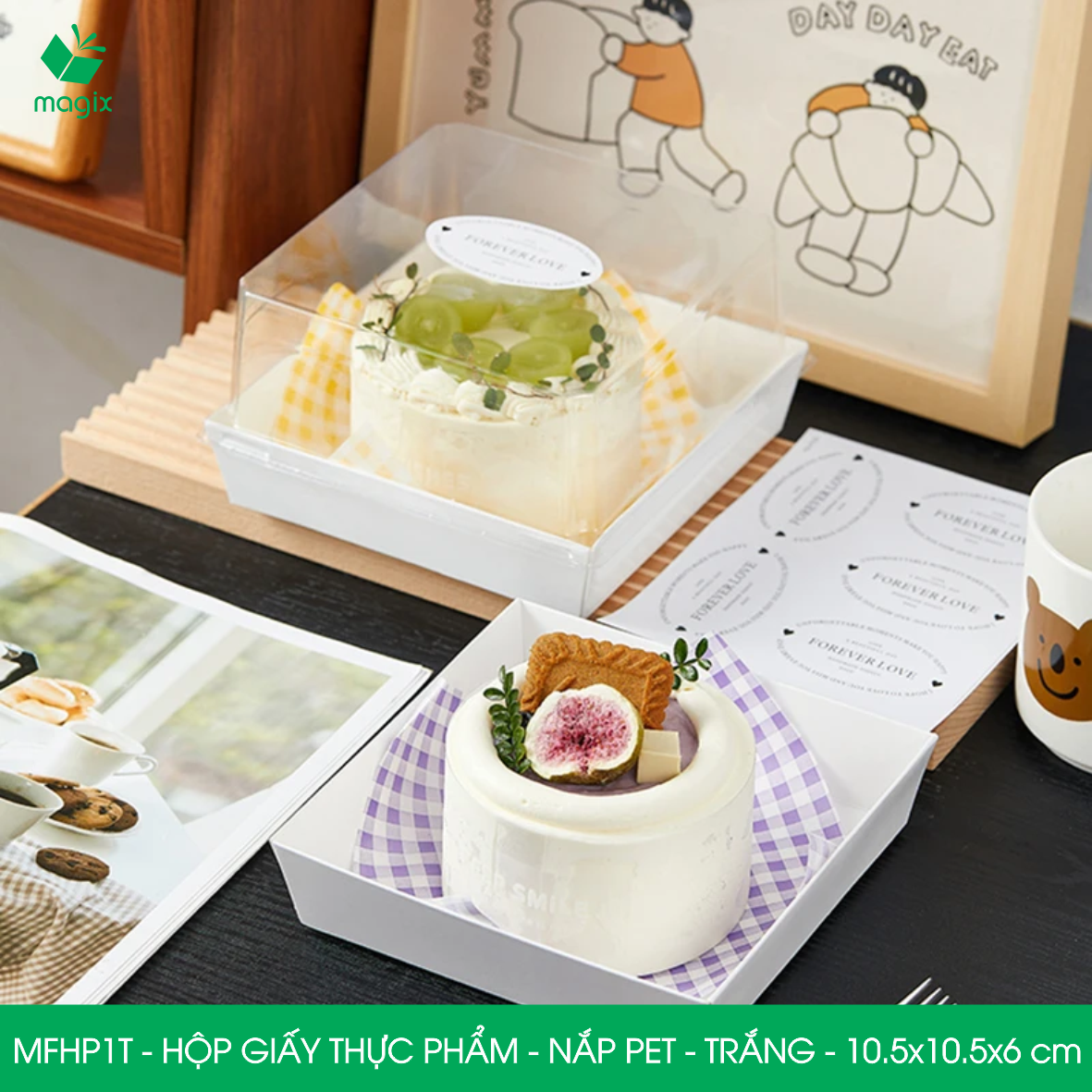 • MFHP1T - Hộp giấy thực phẩm nắp Pet - Trắng - 10.5x10.5x6 cm