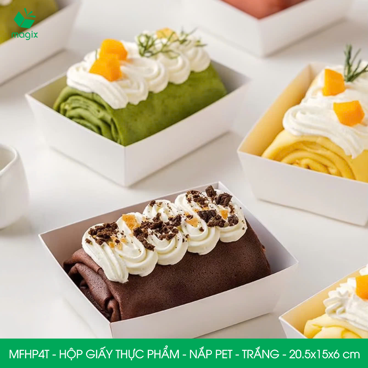• MFHP4T - Hộp giấy thực phẩm nắp Pet - Trắng - 20.5x15x6 cm