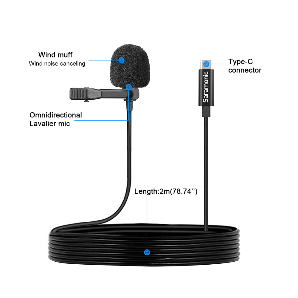 ✨Micro Cho Điện Thoại, Máy Tính Bảng Android Cổng Type-C Saramonic Lavmicro U3A, Thu Âm To, Rõ, Tương Thích Nhiều Dòng Điện Thoại - Hàng chính hãng