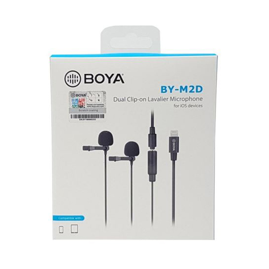 Micro lavalier kỹ thuật số đa hướng cho thiết bị iOS Thiết kế mic kép lý tưởng cho các cuộc phỏng vấn Đầu nối Lightning được chứng nhận của Apple MFi Độ phân giải kỹ thuật số 24 bit / 48 kHz Cho phép các micrô khác có đầu ra TRS 3,5mm để tới thiết bị iOS Full Suite phần mềm ghi âm / Ứng dụng Cắm và chạy Bao gồm túi đựng Micro thu âm cài áo kép Boya BY-M2D, một micro lavalier kỹ thuật số kép giúp thu được âm thanh rõ ràng và chất lượng cao hoạt động với thiết bị di động iOS.   Micro thu âm cài áo kép Boya BY-M2D Với micro lavalier kép, sản phẩm có khả năng thu âm lời nói, âm thanh từ hai đối tượng để ghi âm podcast, phỏng vấn, thu âm nhạc, phát trực tiếp và rất nhiều tiện ích khác. Bên cạnh đó, mô hình cực đa hướng của nó cho phép thu âm 360 độ và hiệu ứng lân cận tối thiểu.   BOYA BY-M2D cho phép kết nối trực tiếp với các thiết bị iOS, chẳng hạn như iPhone, iPad và iPod touch thông qua đầu nối Lightning được Apple MFi chứng nhận.   Tương thích với các thiết bị iOS   Micro chất lượng chuyên nghiệp cung cấp chuyển đổi tín hiệu ở độ phân giải lên tới 24 bit/ 48 kHz với tần số đáp ứng từ 50 Hz đến 20 kHz. Lọc gió được đi kèm cùng micro vừa giúp làm giảm âm thanh và tiếng ồn của gió trong khi bảo vệ màng loa của micro.   Mic thu âm cài áo BOYA BY-M2D cho phép kết nối trực tiếp với các thiết bị iOS, chẳng hạn như iPhone, iPad và iPod touch thông qua đầu nối Lightning được Apple MFi chứng nhận. Micro thu âm chất lượng chuyên nghiệp cung cấp chuyển đổi tín hiệu ở độ phân giải lên tới 24 bit / 48 kHz với tần số đáp ứng từ 50 Hz đến 20 kHz. Lọc gió được đi kèm cùng micro   Micro thu âm cài áo BOYA BY-M2D là một micro lavalier kỹ thuật số kép, nó giúp thu được âm thanh rõ ràng và chất lượng cao hoạt động với các thiết bị di động iOS. Với micro lavalier kép, nó cung cấp khả năng thu âm lời nói chính xác của hai đối tượng để podcast, ghi âm, phỏng vấn, ghi âm nhạc, phát trực tiếp và nhiều hơn nữa.