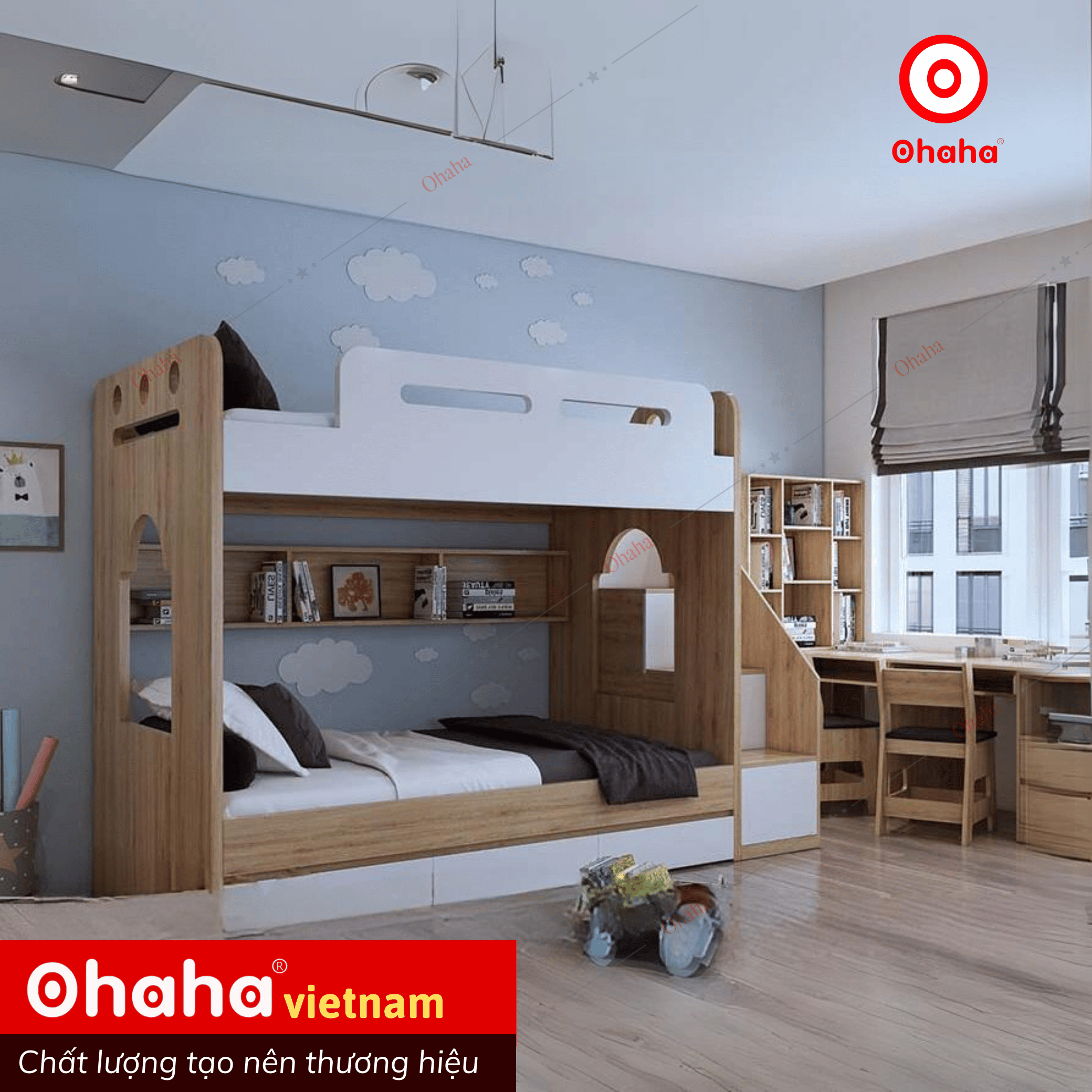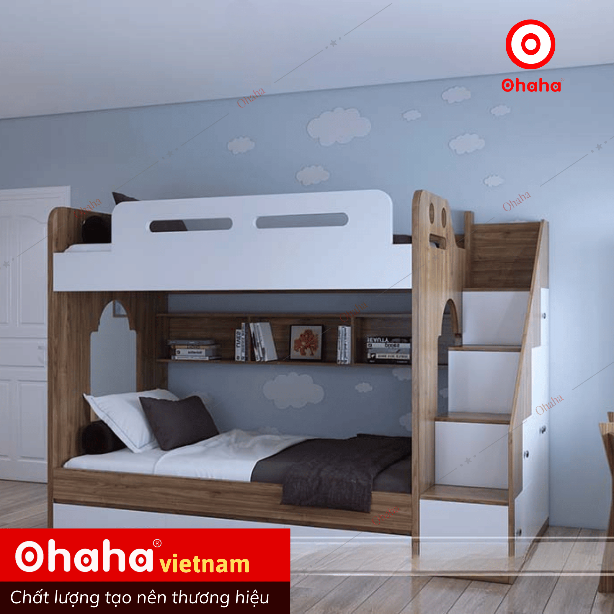 Giường tầng thông minh hiện đại cao cấp Ohaha - GTHĐ021 được thiết kế thông minh mà tiện dụng. Giường tầng sự lựa chọn ưu việt cho không gian nội thất phòng ngủ nhỏ hẹp. Cũng như sản phẩm với mong muốn gắn kết yêu thương của các thành viên trong gia đình.