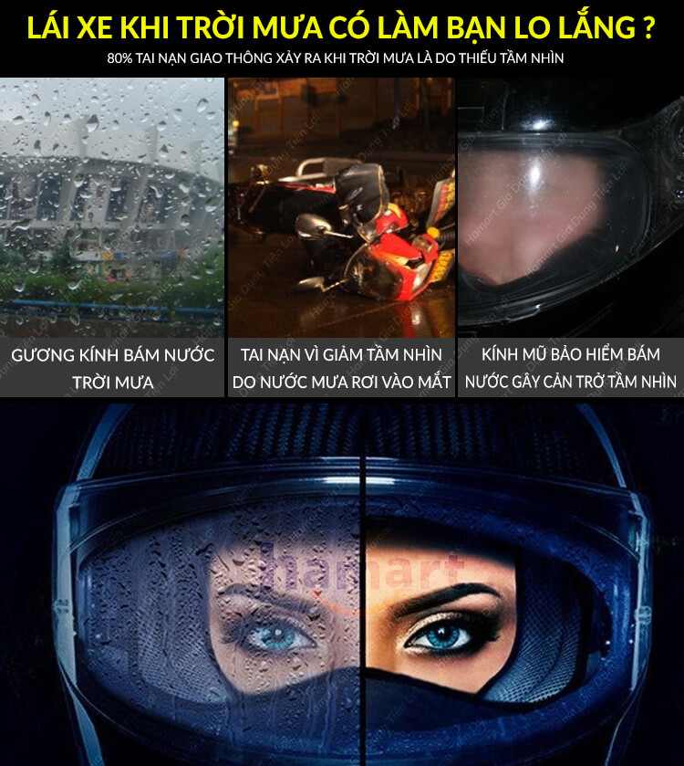 Chống bám nước mưa gương kính mũ bảo hiểm, loại bỏ nước đọng, dễ quan sát khi trời mưa, giảm tai nạn: