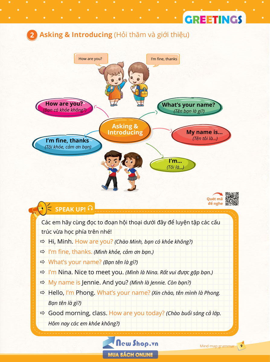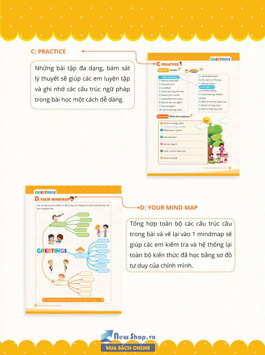 Học các cấu trúc Ngữ pháp theo các sơ đồ tư duy một cách logic, tổng quan và dễ nhớ. Phần Speak up! giúp các em luyện nói để biết cách sử dụng các cấu trúc ngữ pháp đó trong giao tiếp hằng ngày.