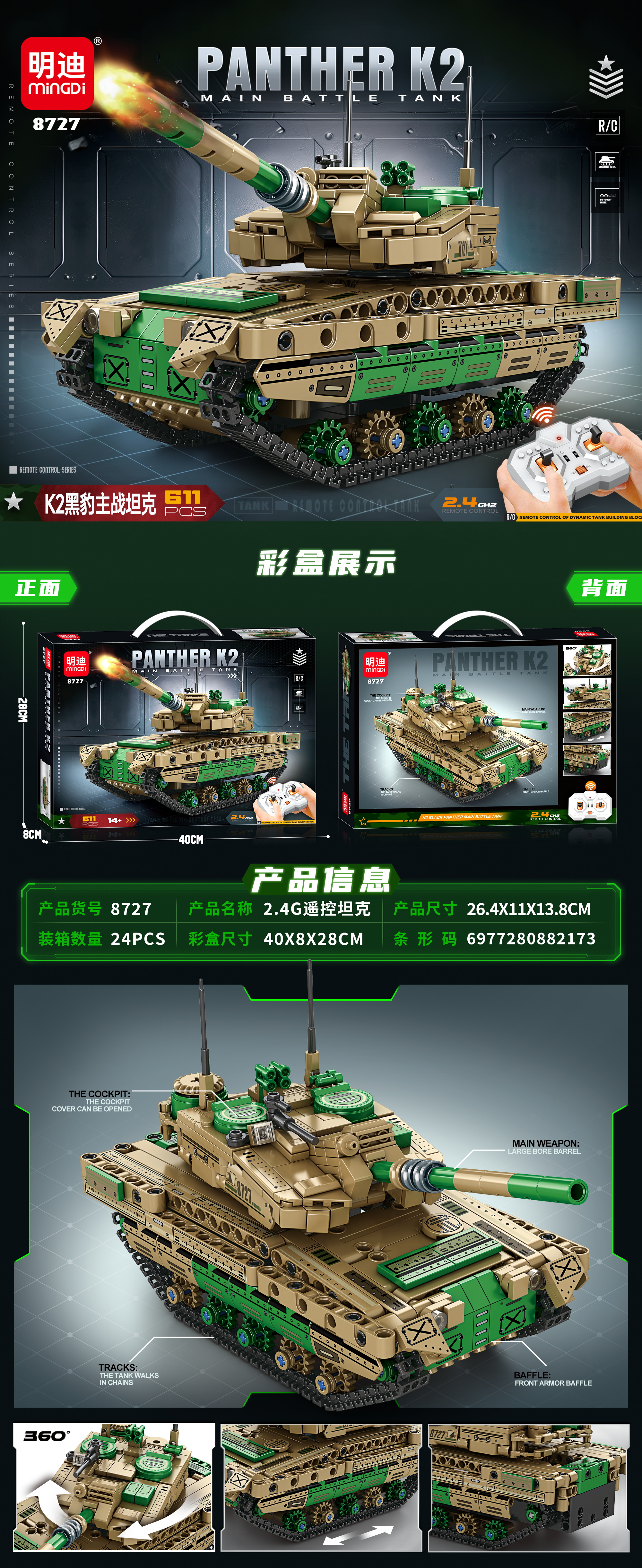 ✨MINGDI - 8727 - Lắp Ráp Xe Tăng Lắp Ráp Điều Khiển Từ Xa Panther K2 (611 Chi Tiết)
