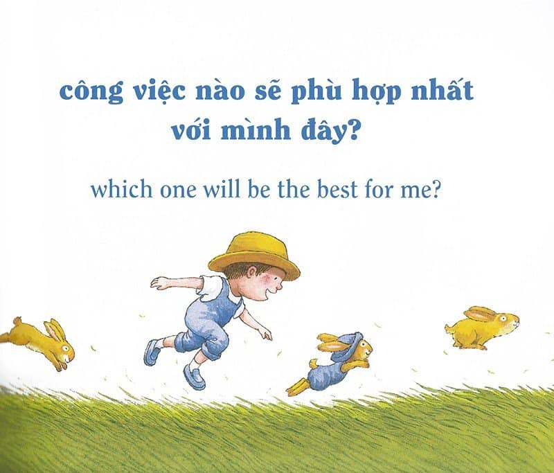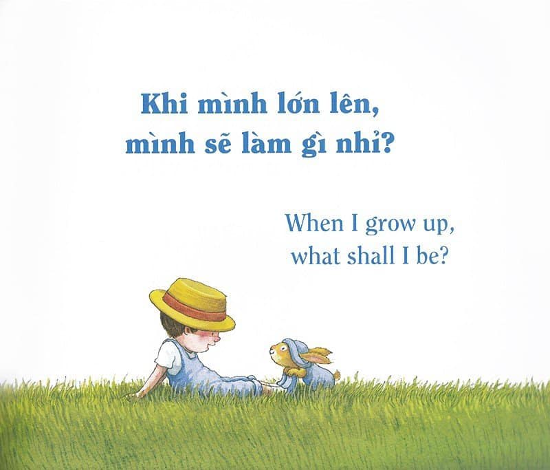 Với cuốn sách song ngữ xinh đẹp này, các bé sẽ được chìm đắm trong thế giới của riêng mình, nơi trí tưởng tượng bay xa và các em có thể làm bất cứ việc gì mà mình thích. Chưa hết, ba mẹ và các bé sẽ khám phá ra tên gọi của rất nhiều “công việc” trong tiếng Anh, và sau cùng bé sẽ chọn công việc nào nhỉ? Câu trả lời sẽ có trong “Mình có thể làm bất cứ việc gì! – I can be anything!” – Cuốn sách tuyệt vời mô tả thế giới trong đôi mắt trẻ thơ