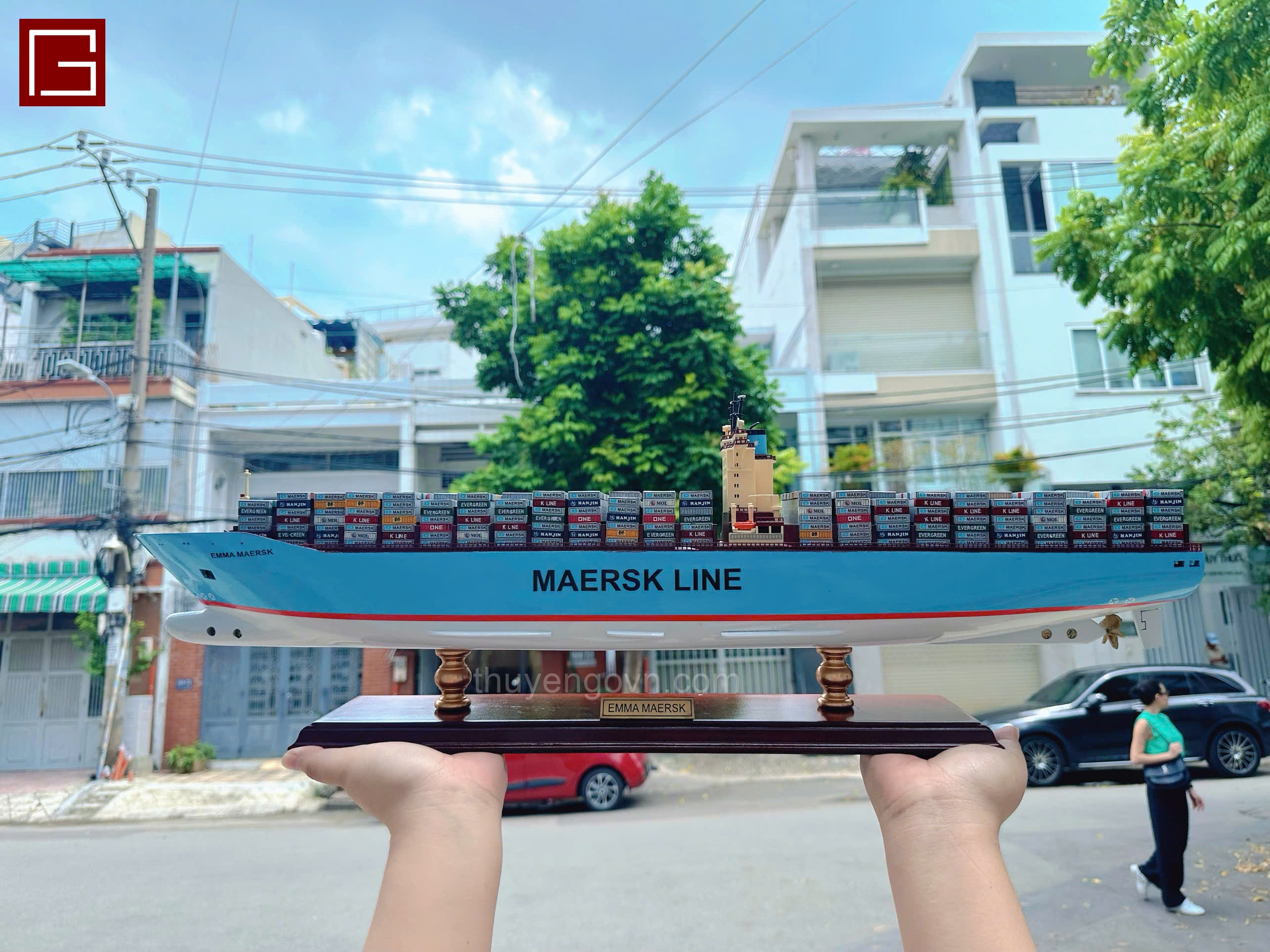Mô hình tàu chở Container tàu container Emma Maersk - Thân dài 100cm - Gỗ tự nhiên sơn màu
