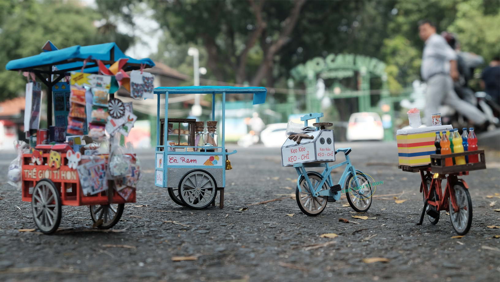 Khách lưu ý: Sản phẩm chưa lắp ráp, chưa bao gồm keo+ dụng cụ+ tượng, không áp dụng đổi tên bảng hiệu   Mô Hình Xe Hàng Rong Sài Gòn Thu Nhỏ - Xe Bánh