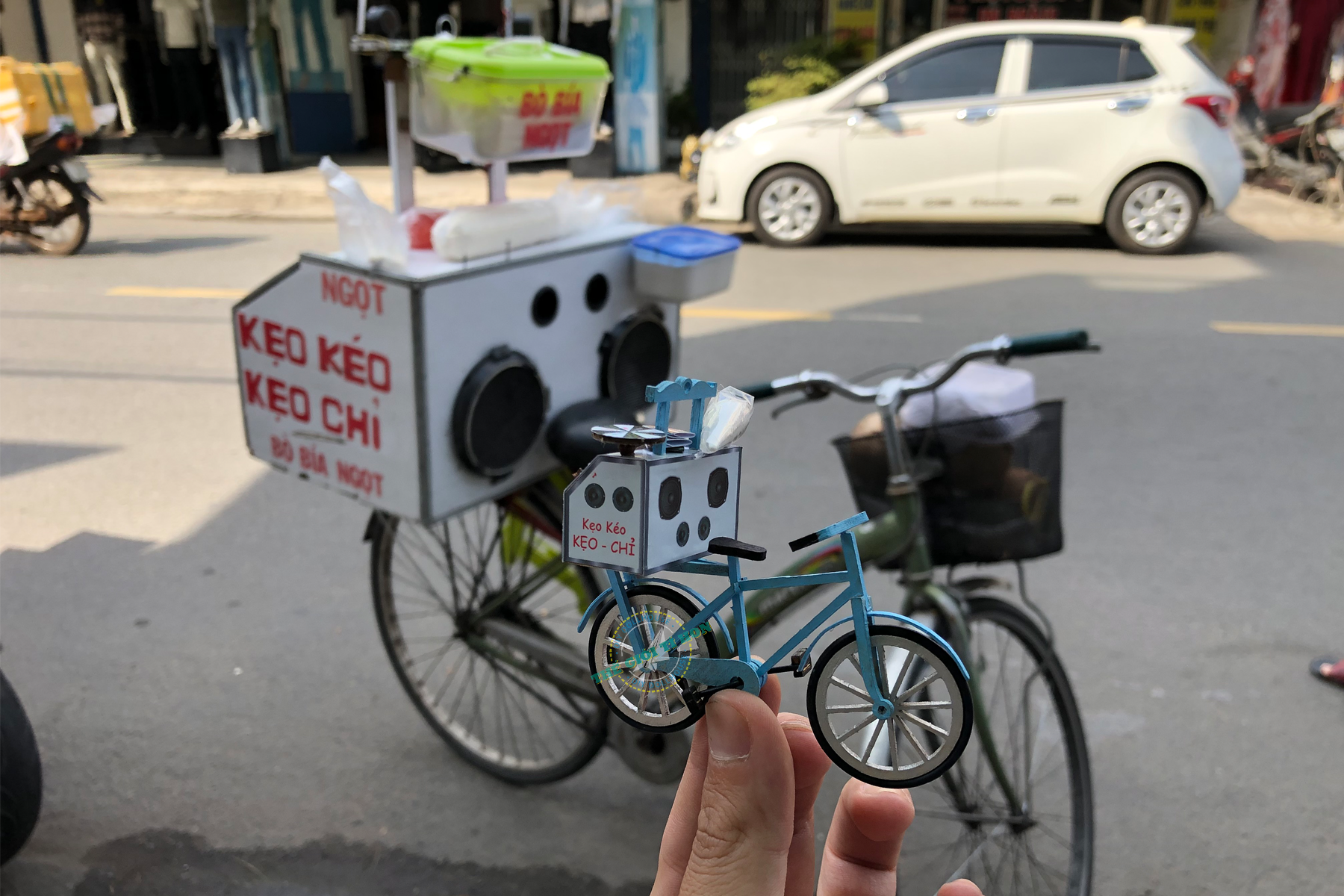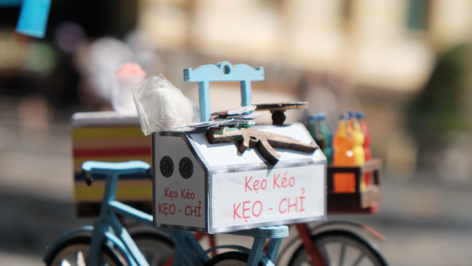Khách lưu ý: SẢN PHẨM TỰ SƠN VÀ LẮP RÁP SẢN PHẨM CHƯA BAO GỒM KEO DÁN CHUYÊN DỤNG, PIN VÀ DỤNG CỤ LẮP RÁP (NHÍP, DAO RỌC GIẤY, KÉO,...) SẢN PHẨM KHÔNG ÁP DỤNG ĐỔI TÊN BẢNG HIỆU GIÁ SẢN PHẨM CHƯA BAO GỒM THUẾ VAT, KHÁCH CẦN XUẤT VAT XIN VUI LÒNG LIÊN HỆ THẾ GIỚI TÍ HON QUA CHATBOX Mô Hình Xe Hàng Rong Tuổi Thơ Sài Gòn - Xe Kẹo Kéo - HR03 ** ĐƠN HÀNG XE HÀNG RONG KHÔNG ÁP DỤNG FREESHIP Kẹo kéo là món ăn vặt được các bạn học sinh rất ưa thích. Để hấp dẫn trẻ em, người bán thường đổi kẹo lấy dép, các loại phế liệu, hoặc chỉ đơn giản là những trò chơi nho nhỏ như cây súng gỗ, chiếc bàn quay số đơn giản, quay trúng số nào hoặc bắn trúng ô nào thì sẽ nhận được phần kẹo tương ứng... Mô hình Xe Kẹo Kéo Sài Gòn Xưa Thu Nhỏ - HR03 Tìm Hiểu Mô Hình Tí Hon Thông số mô hình Đánh giá độ khó Kích thước sản phẩm  9.0 x 4.0 x 8.0 CM (Dài x Rộng x Cao) Xuất xứ VIỆT NAM Cân nặng  0.2 Kg Nguyên vật liệu Gỗ, hoa cỏ khô, vải, giấy, kim loại, đèn Led, gốm sứ,nhựa,... Sản phẩm bao gồm Hộp Pin có công tắt, nguyên vật liệu lắp ráp, sách hướng dẫn.  Phụ kiện làm mô hình (Mua riêng): Keo chuyên dụng + Mica Che Bụi + Bộ dụng cụ Kit...()  Shop hỗ trợ lắp ráp luôn nếu bạn có nhu cầu (có phụ phí)