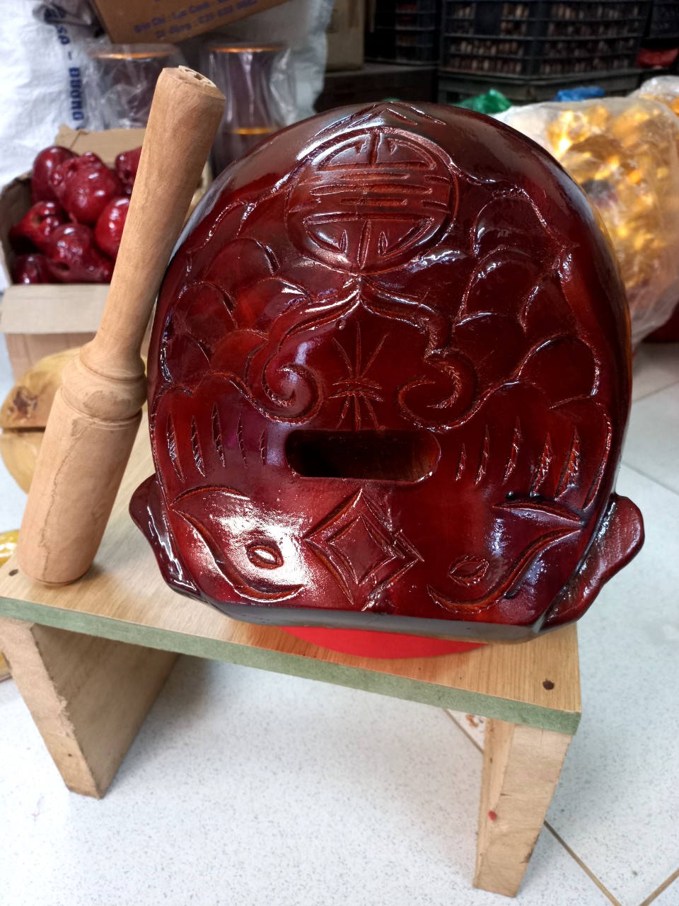 SẢN XUẤT MÕ TỤNG KINH BẰNG GỖ MÍT CHO THẦY TÂM ĐẮC CHÙA GIÁC NGỘ KIÊN GIANG GỬI LÊN GIA CÔNG