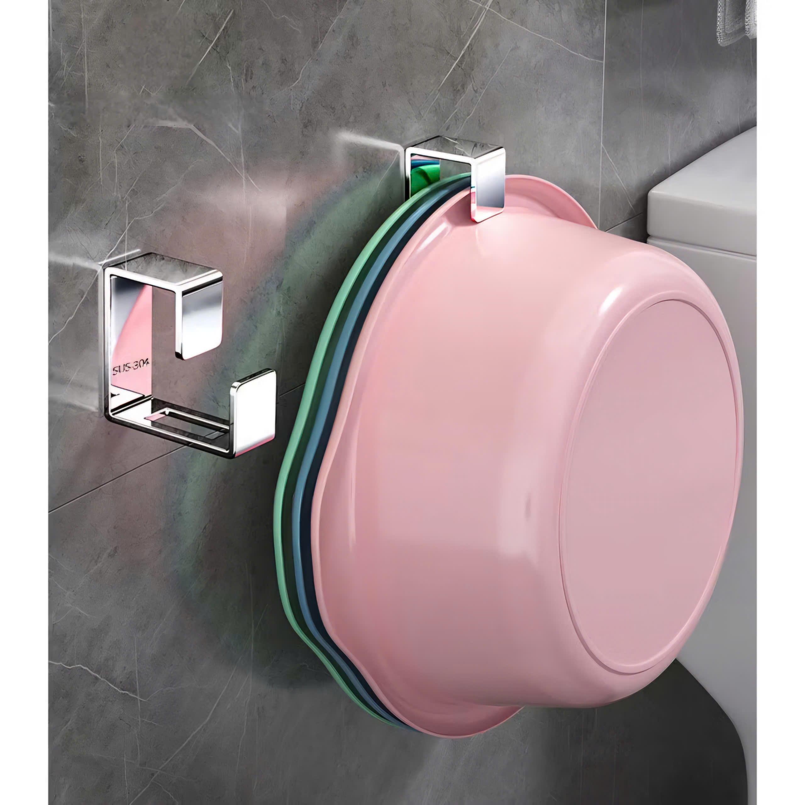 Móc Inox, Treo Thau, Treo Chậu Dán Tường Nhà Tắm , Treo Đồ Đa Năng, Không Khoan Đục, Tiện Dụng