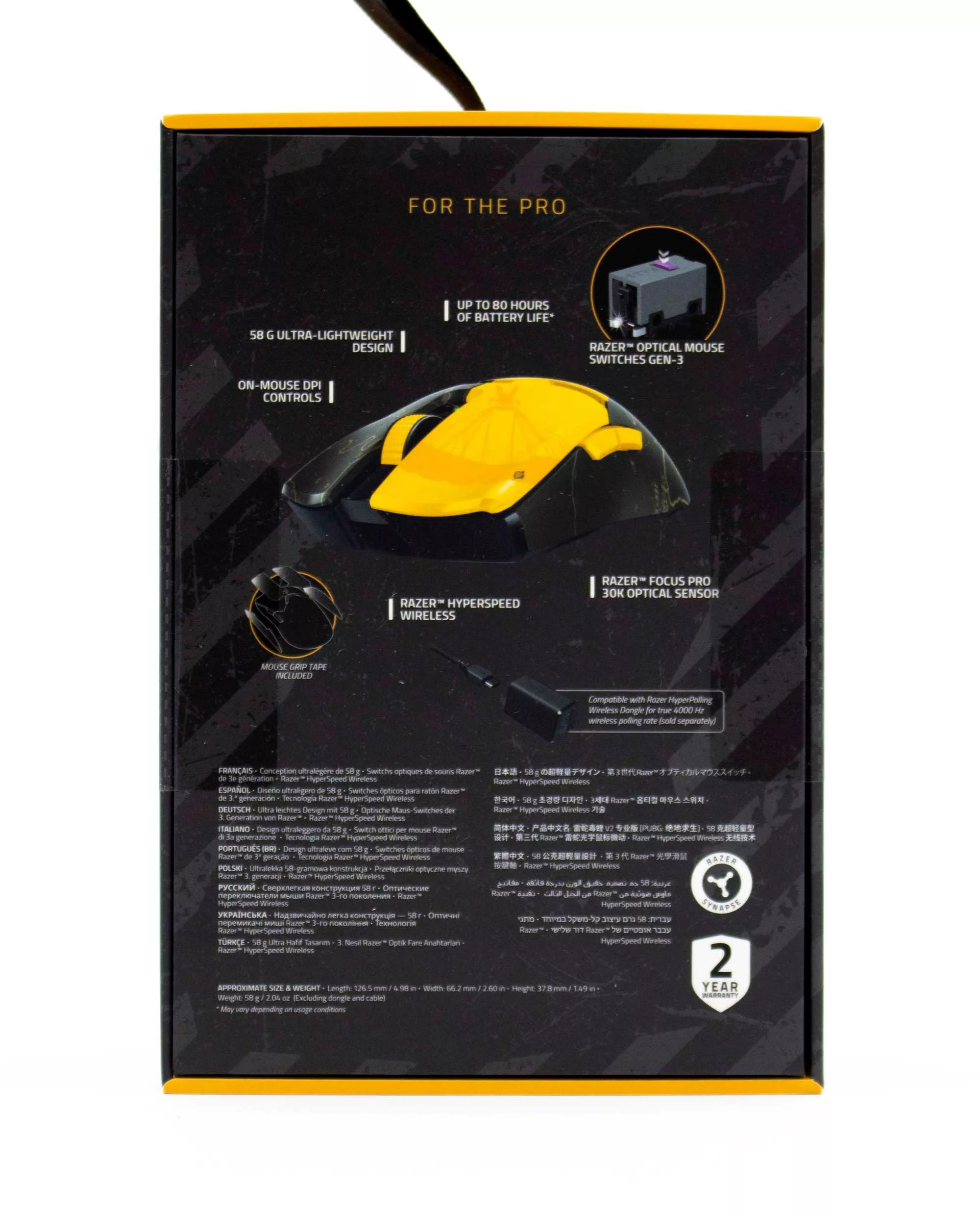 [email protected] - Tham khảo thêm tại: tindocongnghe.vn Chuột Razer Viper V2 Pro Razer cho ra mắt chuột Viper V2 Pro, nhẹ hơn 20% so với dòng Viper Ultimate trước đây. Thế hệ chuột gaming này của Razer có sự kết hợp của switch thế hệ mới, tuổi thọ pin tốt hơn và cảm biến quang học Focus Pro 30K. Sự kết hợp đã giúp Viper V2 Pro trở thành thế hệ chuột gaming mang đến cho người dùng những trải nghiệm esport mới. Được lựa chọn bởi những game thủ hàng đầu Là một dòng chuột đã được khẳng định trong cộng đồng, phiên bản mới Viper v2 này tiếp nối được những giá trị cốt lõi cộng thêm những cải tiến đáng kể giúp nâng cao hơn trải nghiệm của game thủ. Cảm biến Quang học Razer Focus Pro 30k Một trong những cảm biến tốt nhất trên thị trường ở thời điểm hiện tại với những công nghệ như tracking thông minh, đồng bộ chuyển động của thao tác tay với con trỏ chuột trên màn hình một cách tốt nhất, và hơn nữa với cảm biến này khả năng sử dụng đã được nâng cấp khi có thể thao tác trên một bề mặt lớn hơn, sử dụng ngay cả trên kính. Theo Razer, cảm biến quang học Focus Pro 30K mới giúp Viper V2 Pro đạt được độ phân giải chính xác đến 99,8%. Cảm biến này được trang bị tính năng AI (trí tuệ nhân tạo) như Smart Tracking, Motion Sync và Asymmetric Cut-off giúp game thủ nâng cao hiệu suất đến mức cao ở các cấp độ chơi khó. Tính năng Asymmetric Cut-off Tính năng Asymmetric Cut-off đã được cải tiến để có thể hỗ trợ điều chỉnh độ cao chi tiết lên đến 26 cấp độ, so với chỉ 3 cấp độ ở phiên bản trước. Việc mở rộng phạm vi tùy chỉnh cho phép người dùng linh hoạt tinh chỉnh khoảng cách tối đa nhấc chuột và khoảng cách hạ chuột để phù hợp với lối chơi của bạn. Thiết kế siêu nhẹ Ở phiên bản mới này, trọng lượng chuột đã được giảm xuống còn 58g, trải nghiệm tốt hơn bao giờ hết. Switch chuột Razer quang học thế hệ thứ 3 Không double click, không bị xuống cấp hoặc delay khi sử dụng. Mang lại cảm giác của switch tactile (loại switch mỗi khi nhấn cho cảm giác có nấc và phản hồi tốt) và tuổi thọ nhấp chuột lâu hơn, Viper V2 Pro cùng Switch quang học Razer Gen-3 mới loại bỏ sự cố nhấp đúp và độ trễ khi gỡ lỗi. Các switch mới này được sắp xếp để chuột có vòng đời đến 90 triệu lần nhấp, tăng hơn 25% so với tuổi thọ của switch thế hệ trước. Công nghệ Razer HyperSpeed Wireless Nhanh hơn 25% so với những công nghệ không dây khác, đảm bảo sự liền mạch trong quá trình trải nghiệm game với thời gian sử dụng pin lên đến 80 giờ liên tục và có thể kết nối đến nhiều thiết bị cùng một lúc. Tracking thông minh Thông số kỹ thuật - Kiểu chuột: Đối xứng thuận tay phải (Right-handed Symmetrical) -
