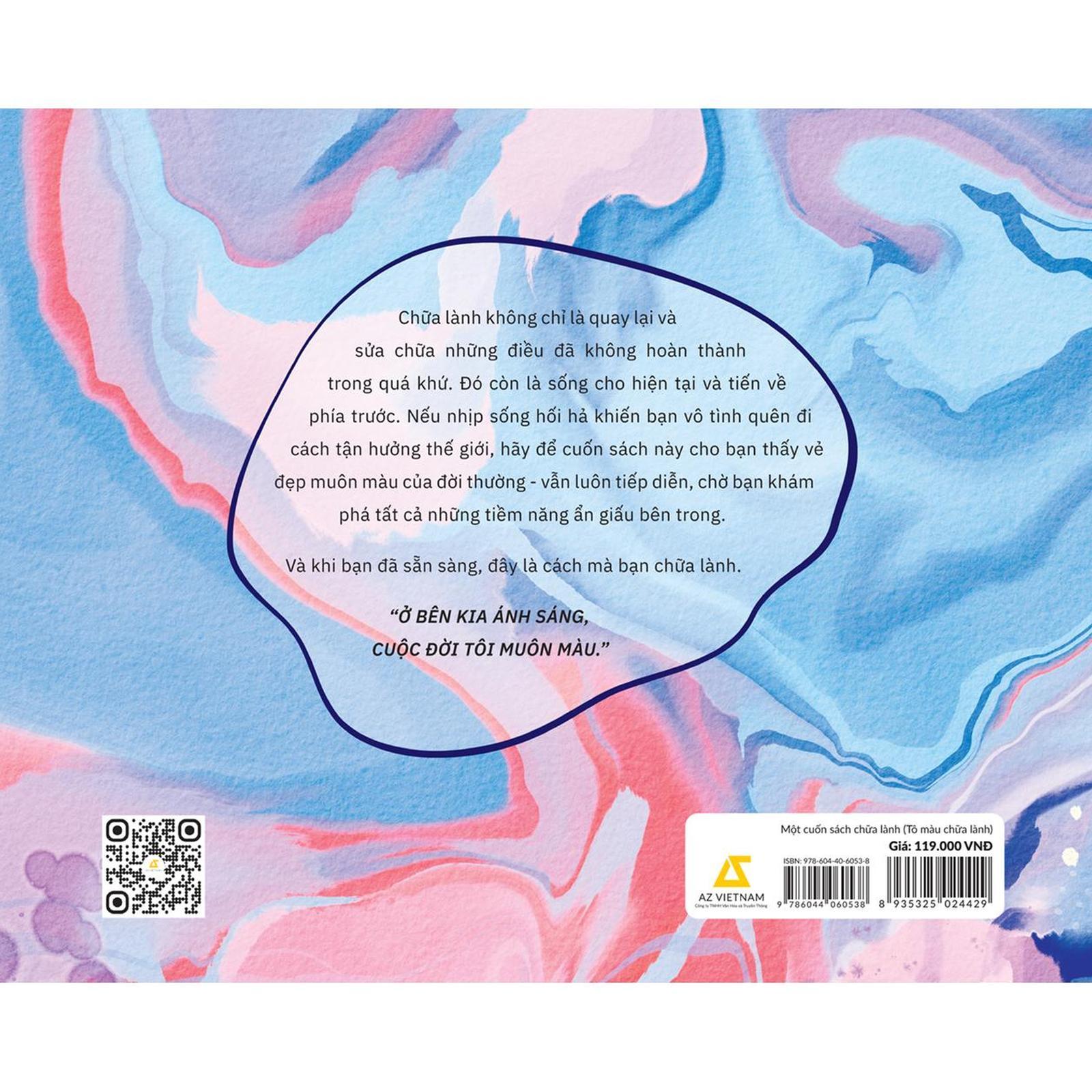 Tiếp nối thành công của cuốn sách best-seller Một cuốn sách chữa lành, phiên bản “Tô màu chữa lành” tuyển chọn những trích dẫn hay nhất, thể hiện qua những bức tranh cuộc sống. Không chỉ đơn giản là cuốn sách tô màu, bạn còn có cơ hội trải nghiệm những hoạt động “micro-healing” như: đối diện với những tổn thương trong quá khứ, thực hành lòng biết ơn và lên kế hoạch cho một phiên bản “cải tiến” của mình trong tương lai,…