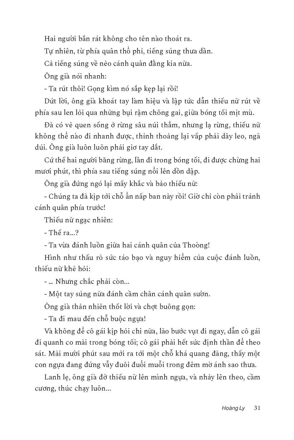 "Đi được nửa dặm ngàn, hết thung lũng, tới con đường mòn chạy vào hẻm, hai bên núi dựng như thành, còn đang đảo mắt quan sát, chàng Đại Sơn Vương đã nghe từ trên cao, từng hồi cồng đổ dồn vang khắp vùng núi thẳm, dư âm vang như man dại ngân nga trong buổi chiều tà.