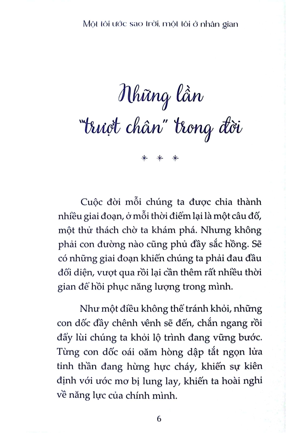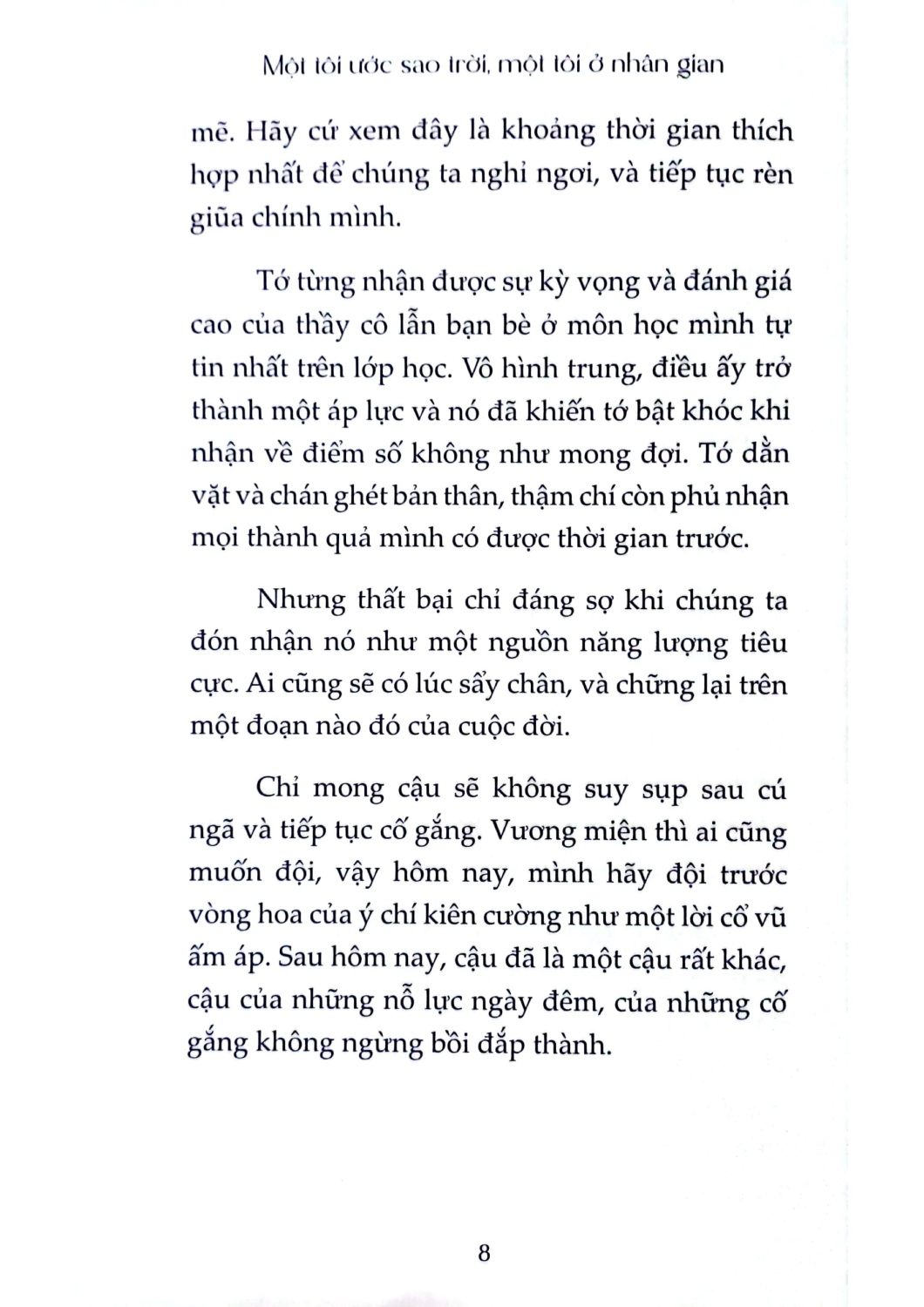 Chẳng có ai “vụt lớn” mà lại không bước qua thương đau cả, chúng ta đều cần đau khổ để có thể trưởng thành, đều cần những vấp ngã để biết cách đứng lên, đều cần những tổn thương để biết ai thực sự trân trọng mình…Một Tôi Ước Sao Trời, Một Tôi Ở Nhân Gian là câu trả lời cho những ai đã và đang trong hành trình “tập lớn”. Mỗi trang sách là một trải nghiệm trên con đường trưởng thành của a tòn, tuy trầy vi tróc vẩy nhưng cũng ngọt ngào và đáng nhớ.