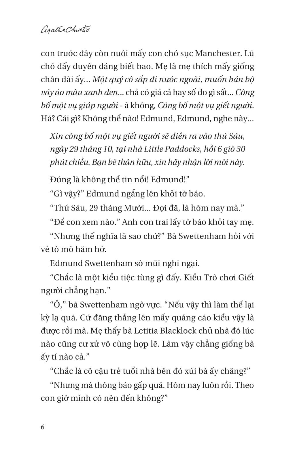 ‘Xin công bố một vụ giết người sẽ diễn ra vào thứ Sáu, ngày 29 tháng 10, tại nhà Little Paddocks, hồi 6 giờ 30 phút chiều.