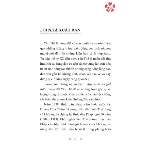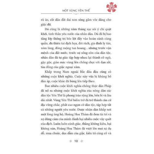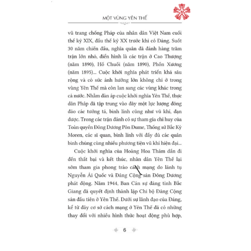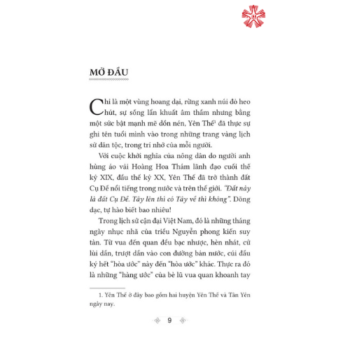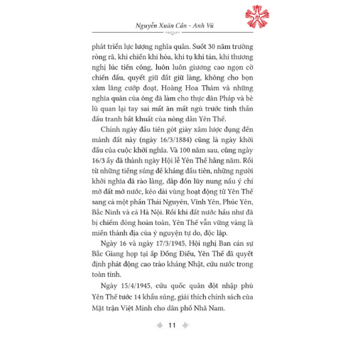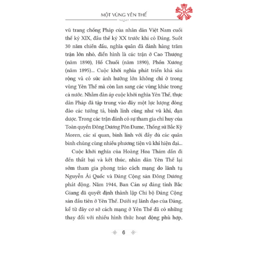 Mua tại TiktokNhằm đáp ứng nhu cầu nghiên cứu, tìm hiểu của bạn đọc về vùng đất và con người Yên Thế, Nhà xuất bản Chính trị quốc gia Sự thật xuất bản cuốn sách Một vùng Yên Thế do các tác giả Nguyễn Xuân Cần và Anh Vũ biên soạn. Ngoài Mở đầu, Lời kết, cuốn sách chia làm ba phần: Phần thứ nhất: Giới thiệu vùng đất Yên Thế trong lịch sử dân tộc; những nét đặc sắc về đất rừng, địa lý, giao thông, làng xóm; những đặc sản, tập tục làng quê, những phiên chợ, nghề thủ công... Phần thứ hai: Giới thiệu về các nhân kiệt gắn với các cuộc khởi nghĩa của người anh hùng dân tộc Hoàng Hoa Thám và các tướng lĩnh nghĩa quân tiêu biểu... Phần thứ ba: Giới thiệu các di tích lịch sử, văn hóa tiêu biểu ở địa phương.