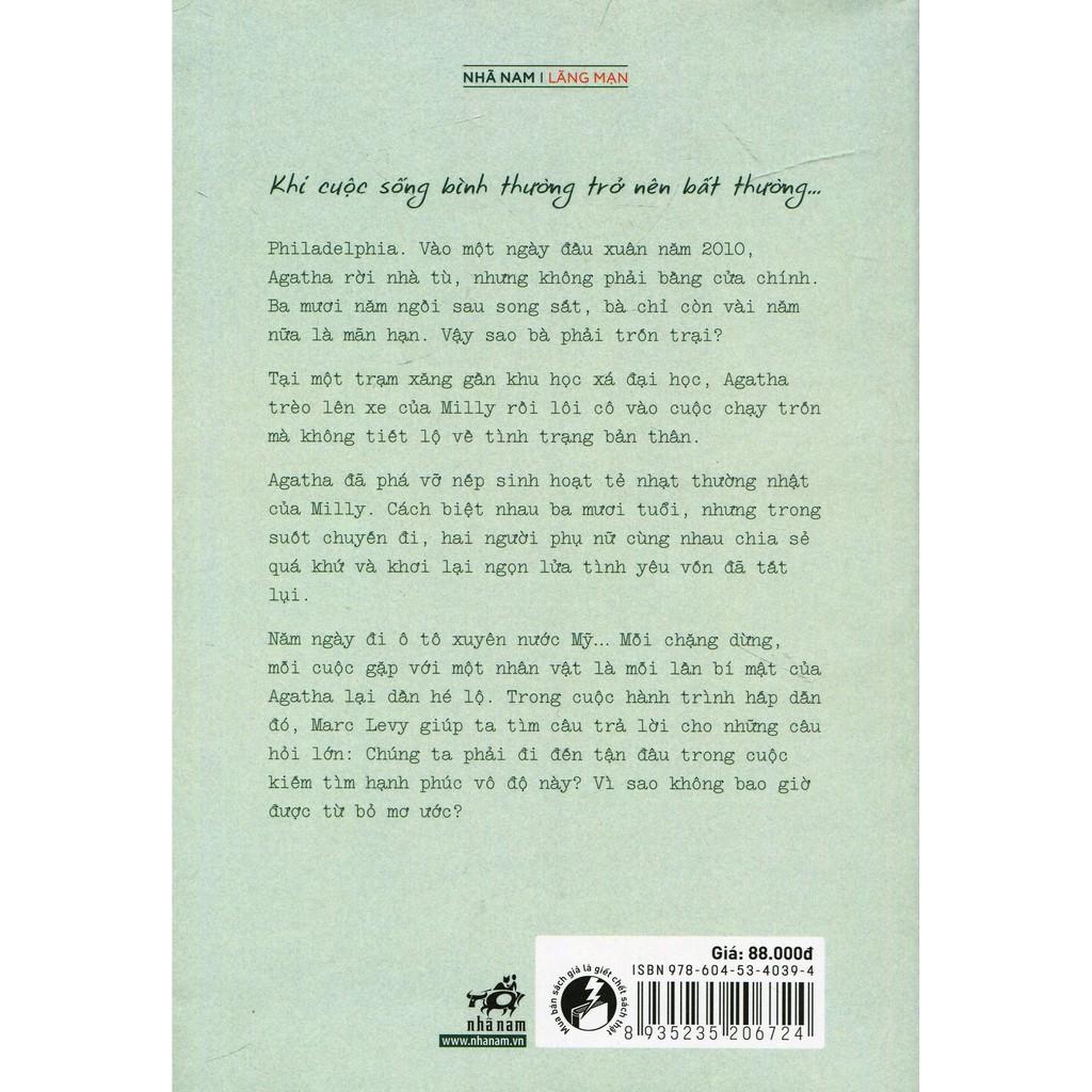 Năm ngày đi oto xuyên nước Mỹ Mỗi chặng dừng, mỗi cuộc gặp với một nhân vật là mỗi lần bí mật của Agatha lại dần hé lộ. Trong cuộc hành trình hấp dẫn đó, Marc Levy giúp ta tìm câu trả lời cho những câu hỏi lớn: Chúng ta phải đi đến tận đâu trong cuộc tìm kiếm hạnh phúc vô độ này? Vì sao không bao giờ được từ bỏ ước mơ?