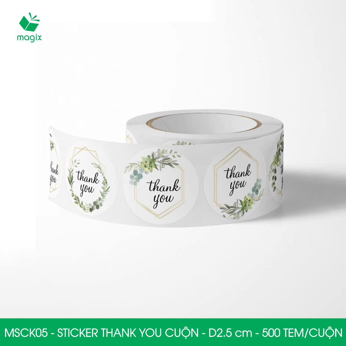 ✨MSCK05 - D2.5 cm - 1 Cuộn 500 sticker thank you tròn, nhãn dán thank you, tem dán cảm ơn