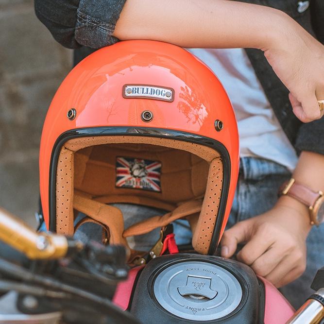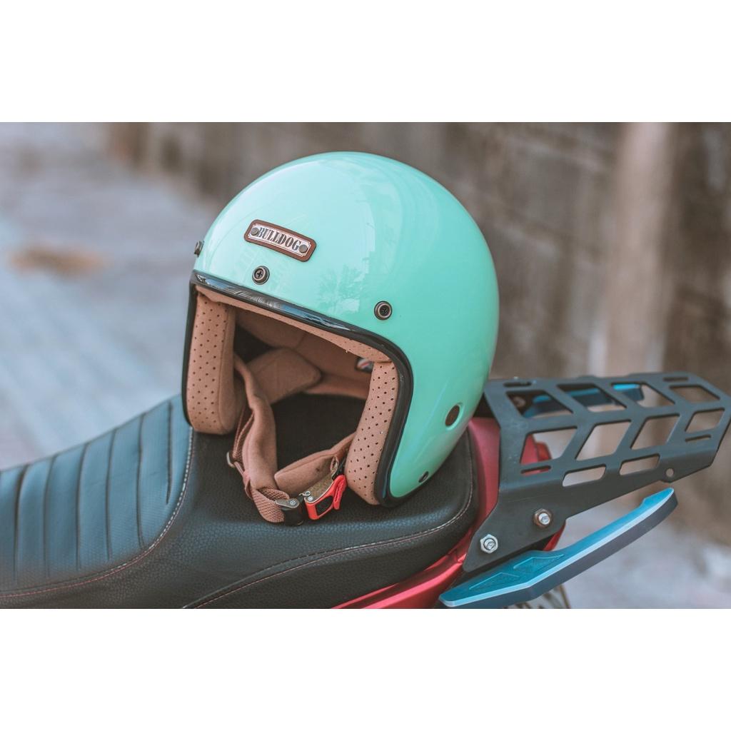 Mũ bảo hiểm 3/4 Bulldog Heli Fiberglass Mũ bảo hiểm 3/4 Bulldog Heli Fiberglass đậm chất cổ điển và được trau chuốt tỉ mỉ đến từng chi tiết, đặc biệt chất liệu sợi thủy tinh
