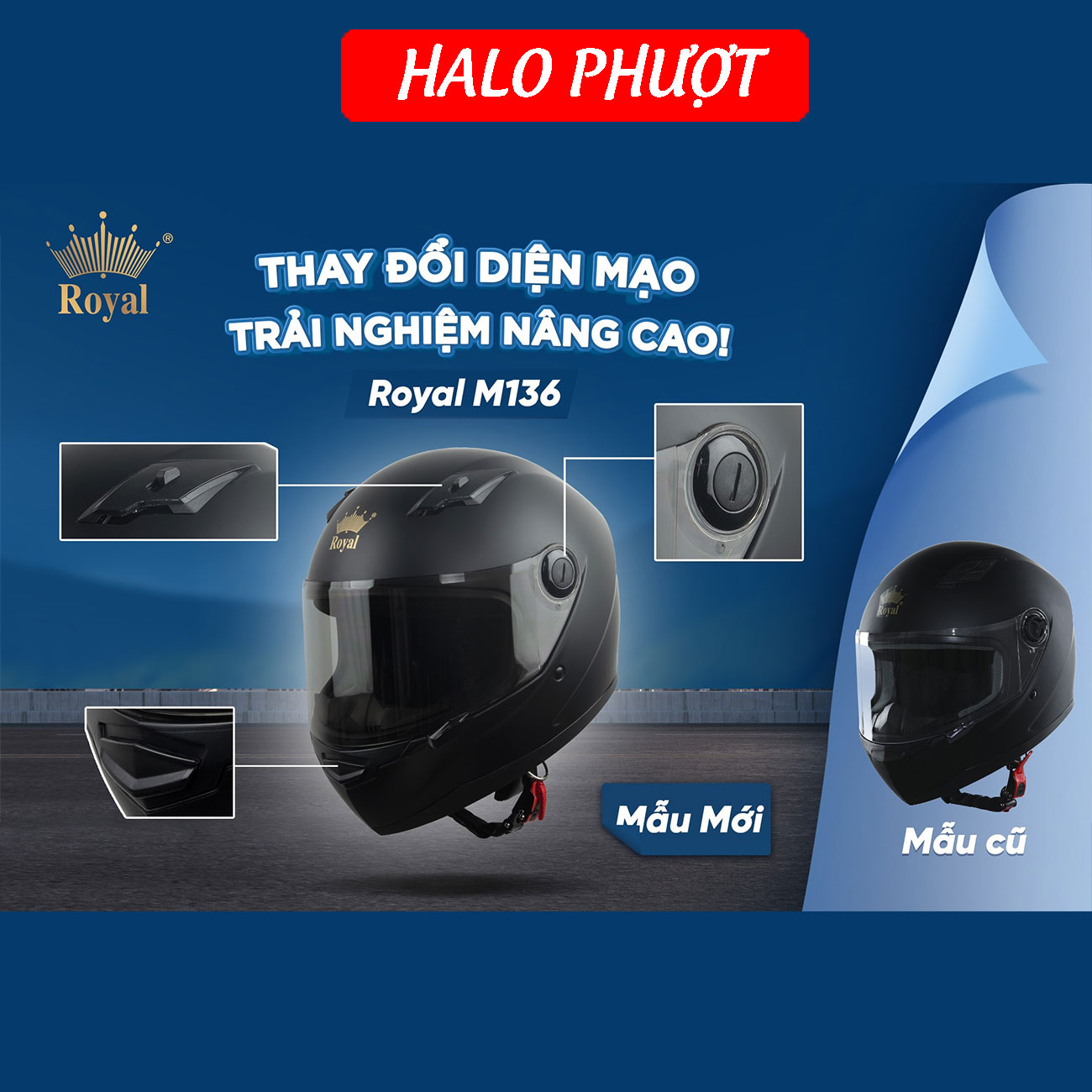MŨ BẢO HIỂM FULLFACE ROYAL M136 - Thương hiệu: Royal Helmet - Xuất xứ: Việt Nam - Trọng lượng: 1050g ± 50g - Thời gian bảo hành: 1 năm - Size mũ: Size L: 55