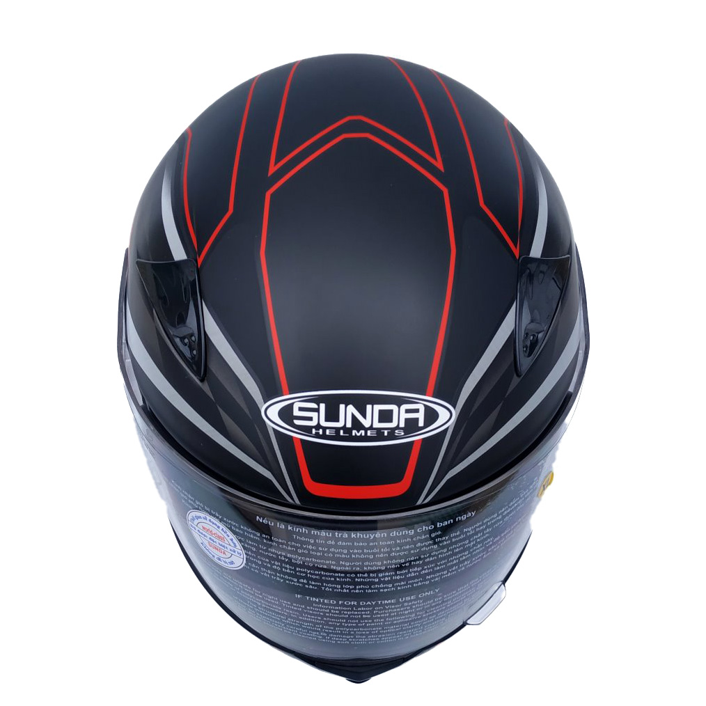 Mũ bảo hiểm fullface Sunda 2000c đen nhám tem đỏ: