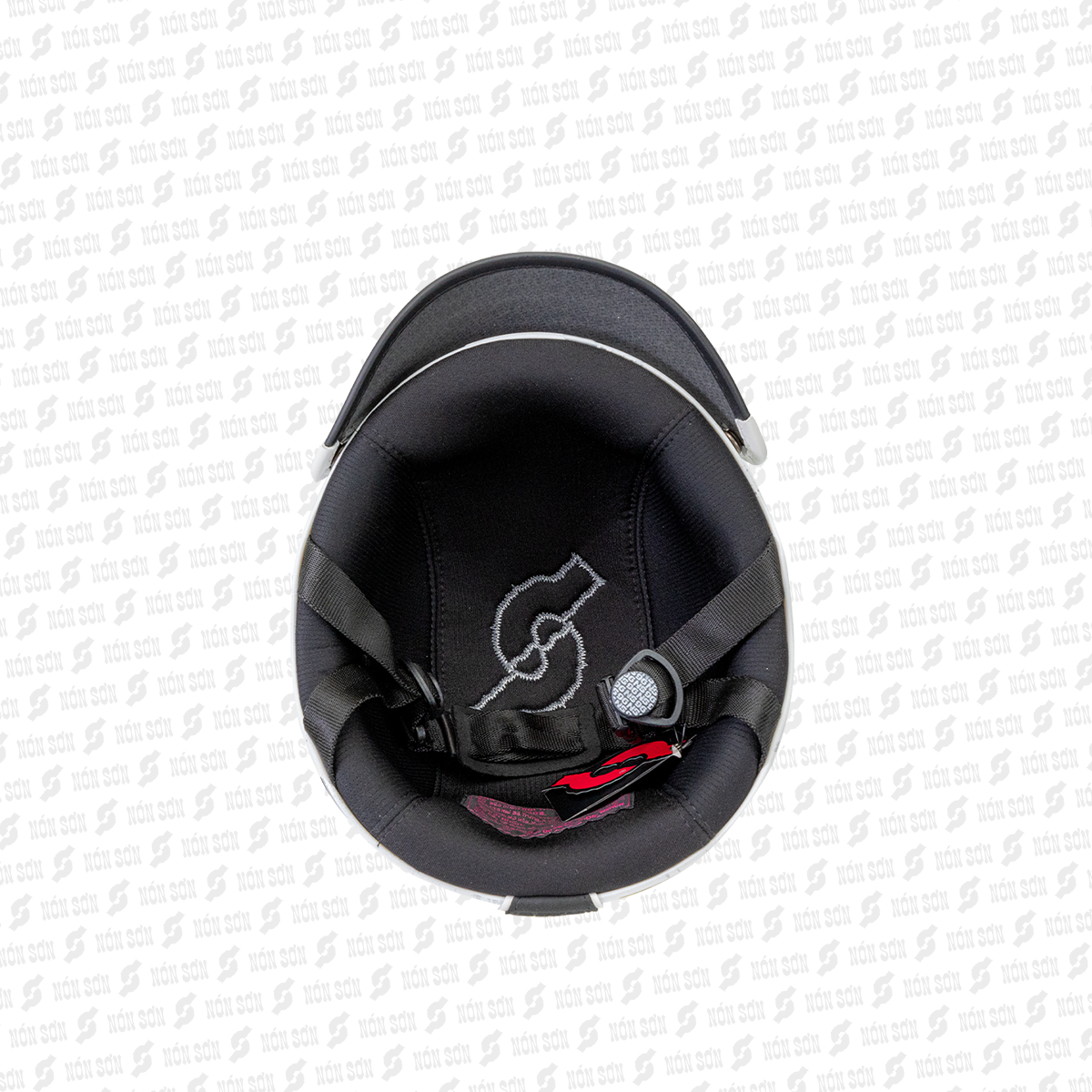 • Phần logo NÓN SƠN được gắn trên vỏ nón bảo hiểm Nón Sơn được làm từ da thật.