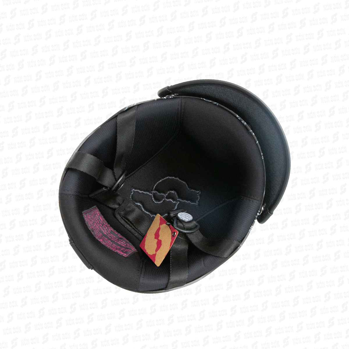 • Phần logo NÓN SƠN được gắn trên vỏ nón bảo hiểm Nón Sơn được làm từ da thật.