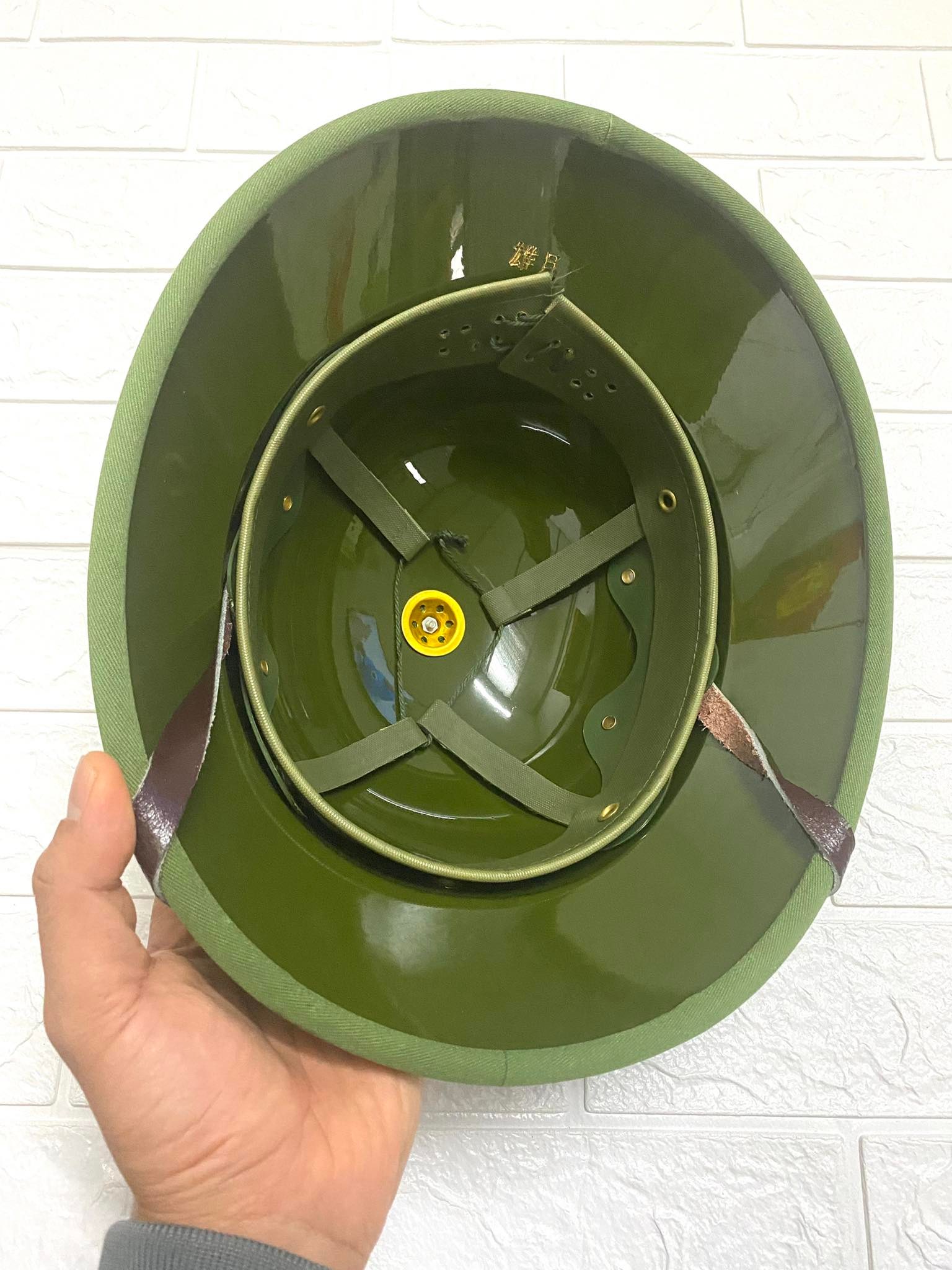 Mũ cối chuẩn 1966 Chịu lực chịu va đập cực tốt chống nước chống phai màu Lòng vàng Bọc Vải chuẩn đẹp Lỗ thông hơi,khuy làm bằng nhôm quai làm bằng da bò Cách điện,