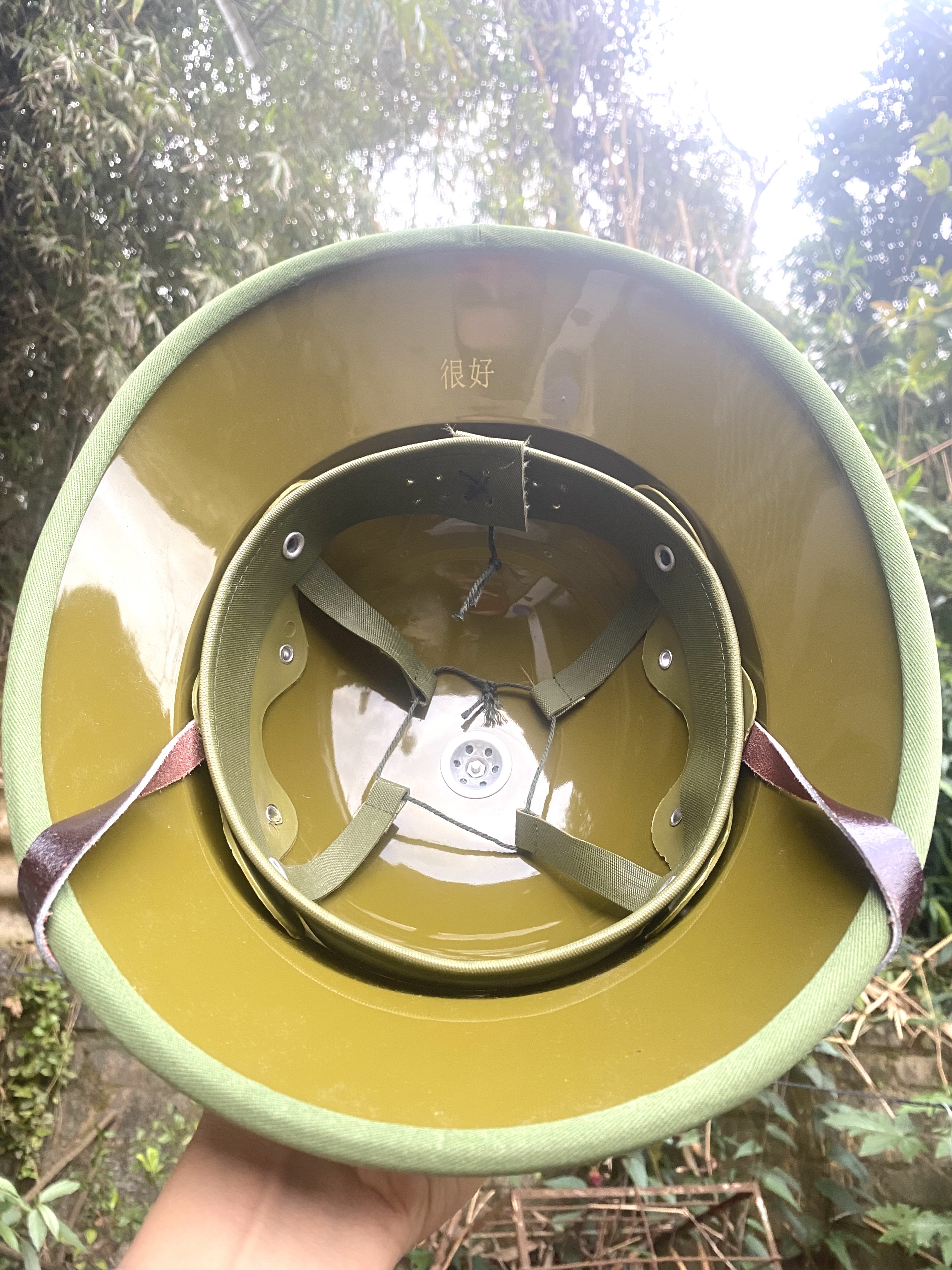 Mũ cối chuẩn 1966 Chịu lực chịu va đập cực tốt chống nước chống phai màu Lòng vàng Bọc Vải chuẩn đẹp Lỗ thông hơi,khuy làm bằng nhôm quai làm bằng da bò Cách điện,