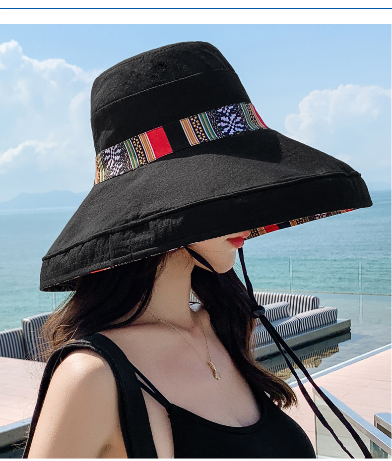 Nón mũ rộng vành đi biển chống nắng cho nữ phiên bản Hàn Quốc mới đi du lịch ngoài trời giải trí có thể gập lại chống tia cực tím Hàng nhập chất liệu vải