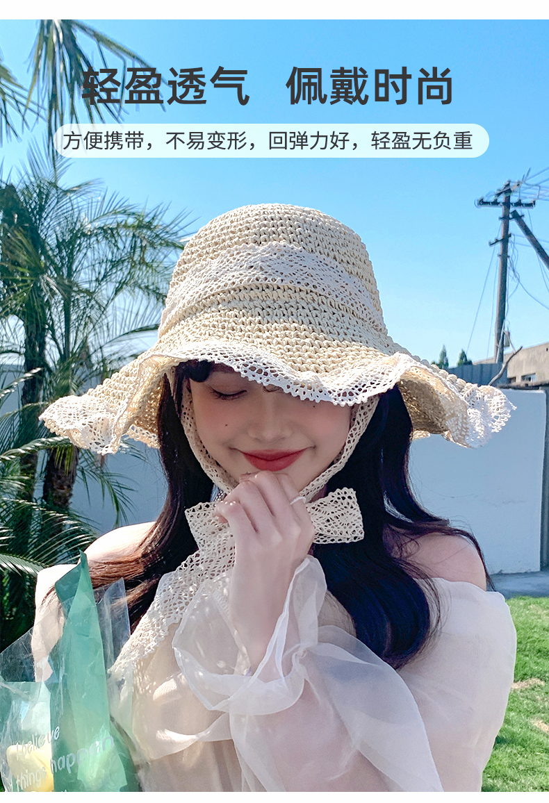 [GIẢM CỰC SỐC] Mũ Rơm Nữ Du Lịch Mùa Hè Mũ Chống Nắng Phối Ren Rỗng Cạnh Sản phẩm tốt