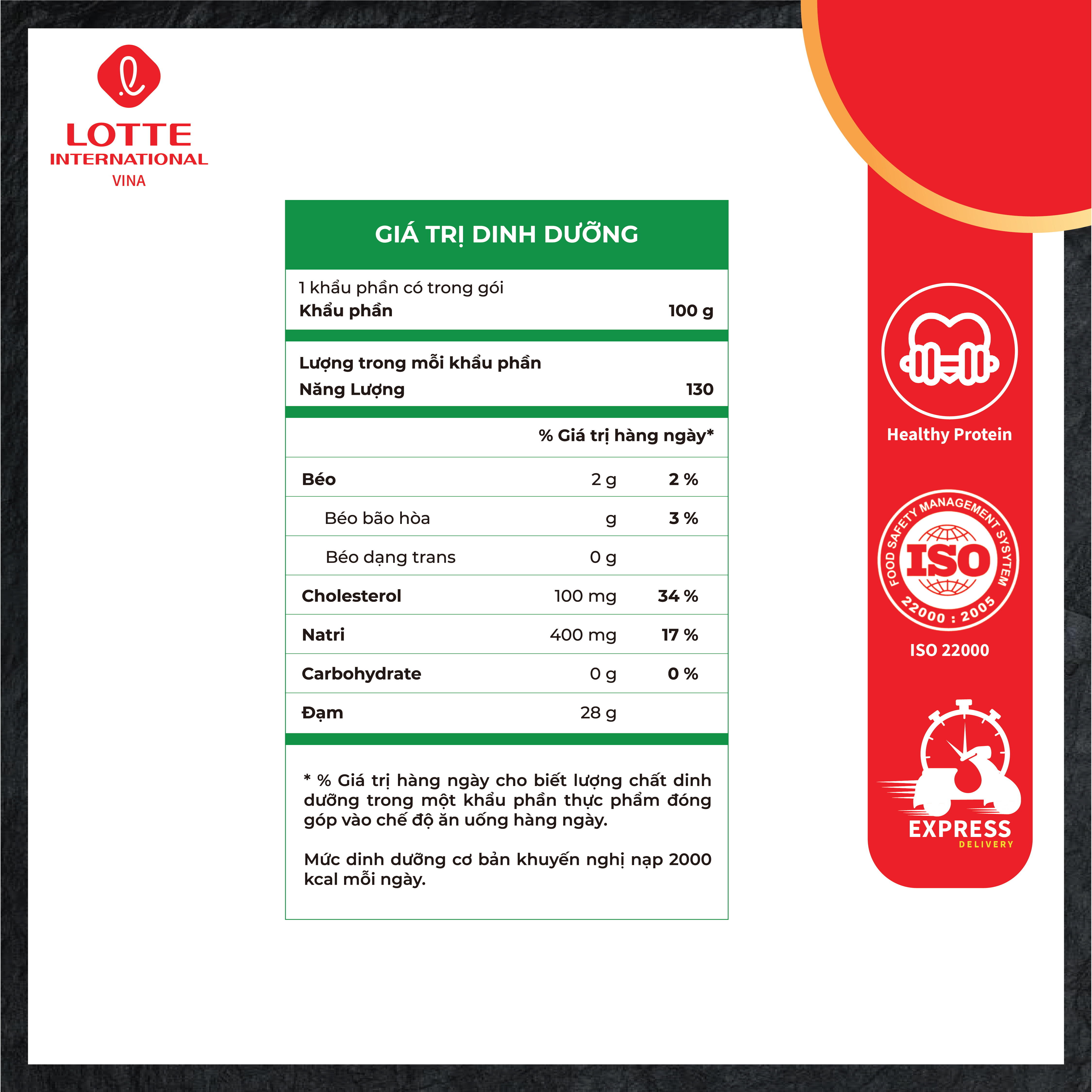Thông tin cảnh báo: không sử dụng sản phẩm đã hết hạn sử dụng. Sản phẩm sau khi mở bao bì chưa sử dụng hết nên bảo quản ngăn mát tủ lạnh sử dụng trong vòng 1 ngày