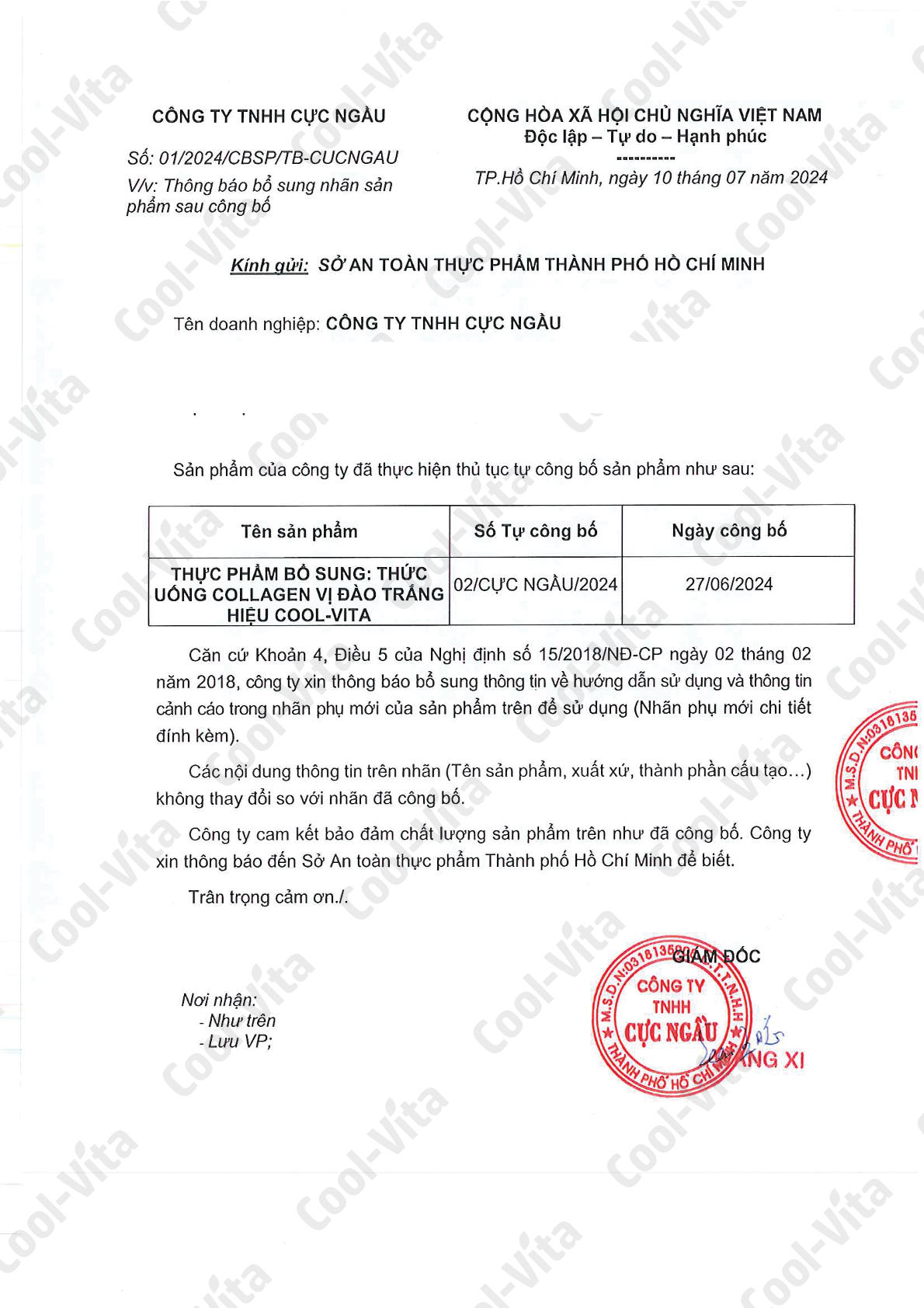 - Công dụng của nước uống Collagen Cool-Vita: Đáp ứng nhu cầu bổ sung collagen hàng ngày. Hỗ trợ duy trì độ đàn hồi cho da. Giúp hạn chế sự xuất hiện và hỗ trợ che giấu nếp nhăn. Hỗ trợ dưỡng tóc và móng chắc khỏe hơn.