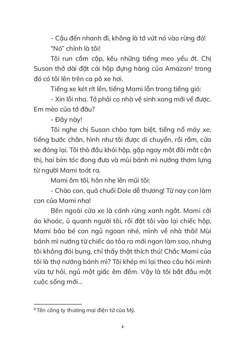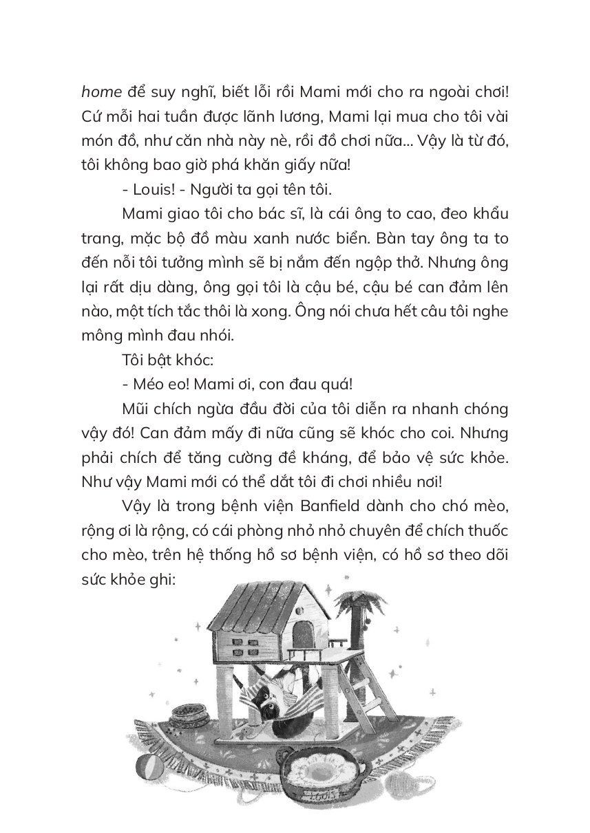 Tôi thương mấy quả bong bóng lắm, chúng không bay lên trời mà nằm thiệt ngoan trên tấm mền ấm áp mùi ông ngoại. Mami thường nói, tôi là con mèo hạnh phúc nhất quả đất! Tôi chưa biết quả đất thế nào, có to không, nhưng tôi biết bàn tay Mami thương tôi thế nào và tôi biết là mình rất hạnh phúc!