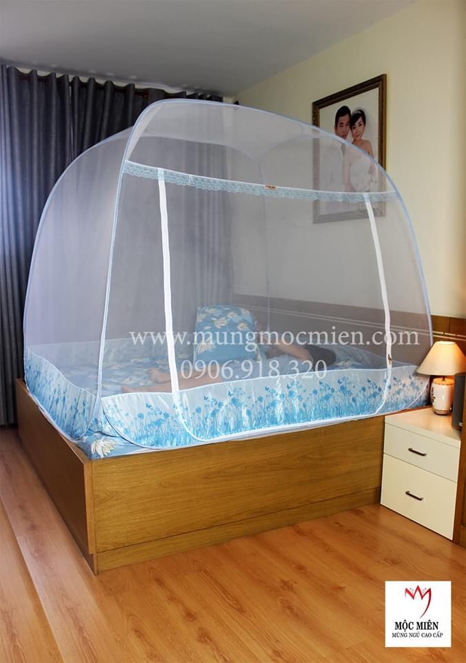 MÀN CHỤP , MÙNG CHỤP CAO CẤP MỘC MIÊN ĐỈNH CHÓP : - Dùng màn chụp đỉnh chóp cho không gian nhà nhỏ - dễ gấp , mắt lưới thưa hơn mà vẫn đảm đảm