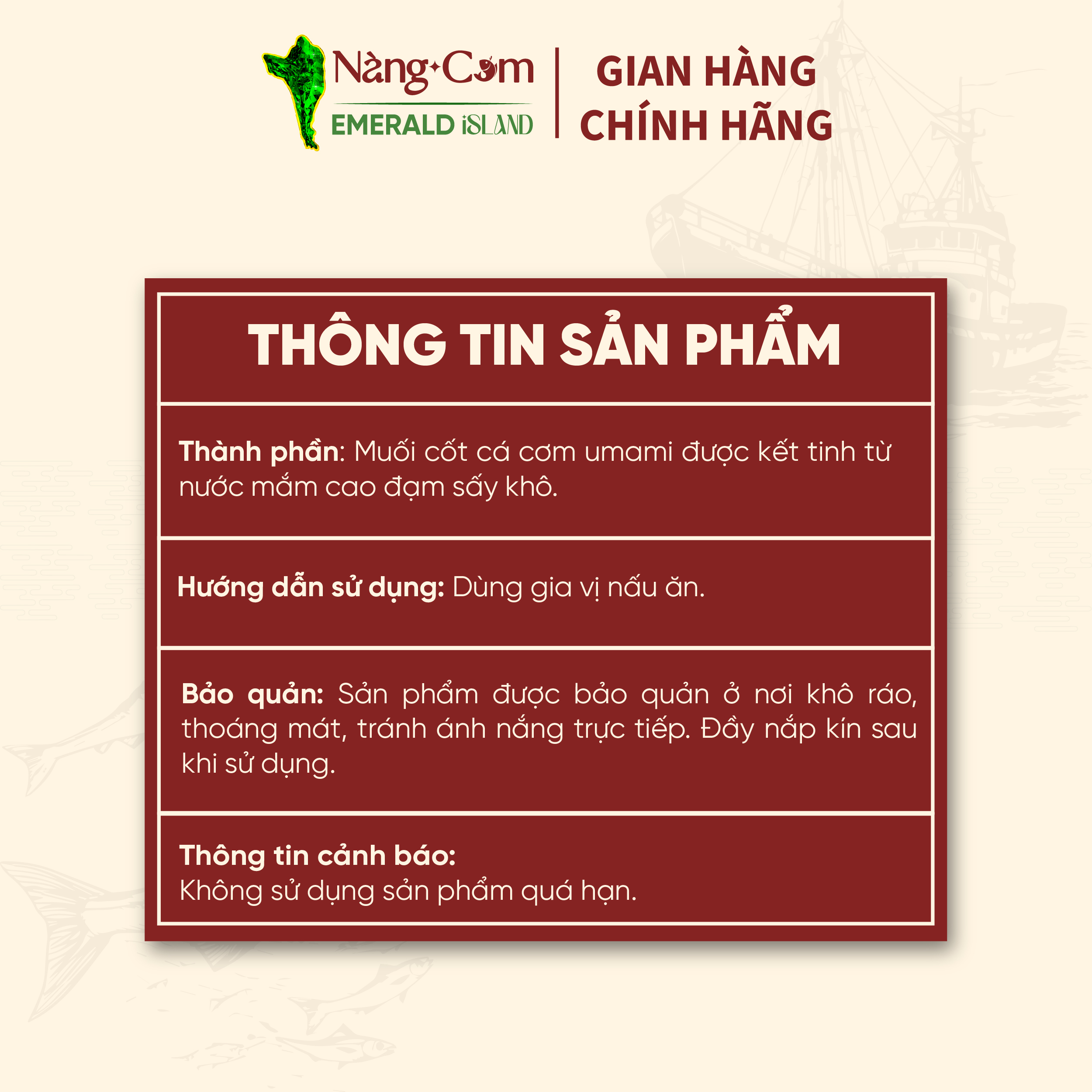 Muối Umami Phú Vị + Khối lượng tịnh: 200gr + Loại hộp: Pet + Thương Hiệu: Nàng Cơm + Xuất xứ: Việt Nam + Hạn sử dụng: 24 tháng